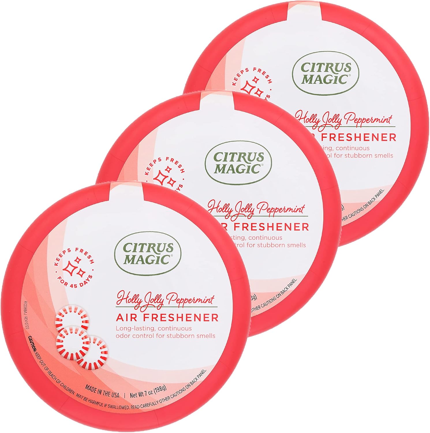 Citrus Magic Holiday Odor Absorbing Solid Air Freshener, Holly Jolly Peppermint, 7-Ounce, Pack of 3