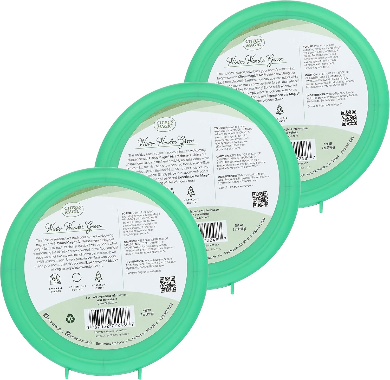Citrus Magic Holiday Odor Absorbing Solid Air Freshener, Winter Wonder Green, 7-Ounce, Pack of 3