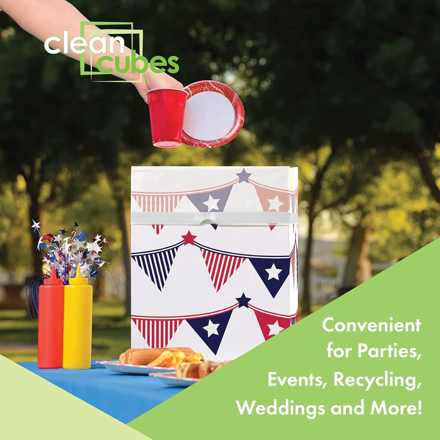 - ✅ 【EFFORTLESS CLEANUP & DISPOSAL】Simply unfold, use, and toss — keep your event clean and mess-free without extra effort. Clean Cubes are disposable recycling bins and trash cans with a patent-protected design and custom-fitted trash liner in each bin.