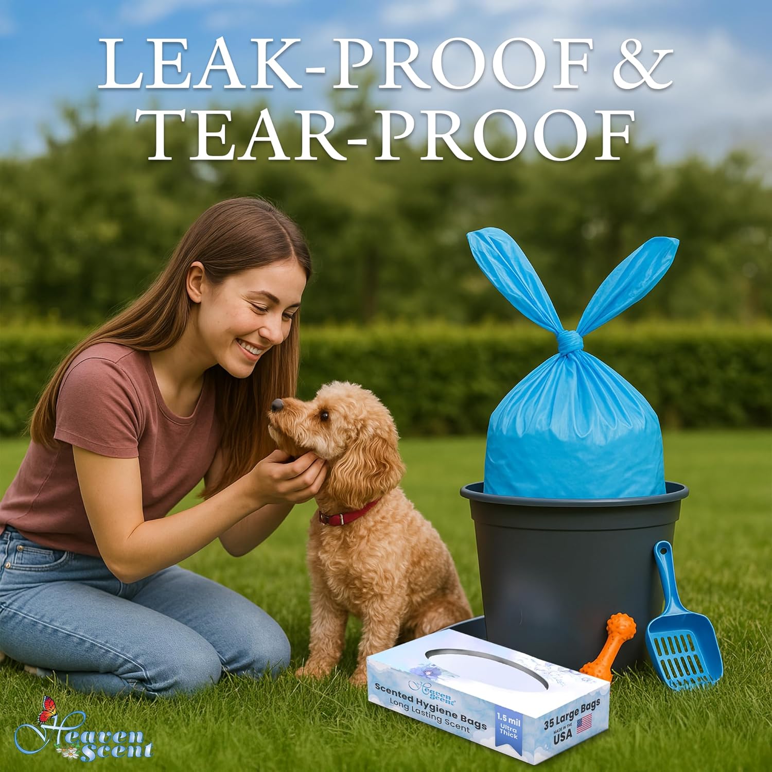 Heaven Scent Hygiene Bags 1.5MIL ULTRA-THICK Discreet Waste Disposal | Made in the USA | Mild Baby Powder Scented Trash Bags for Adult Briefs & Feminine Products - Large, 35 Bags
