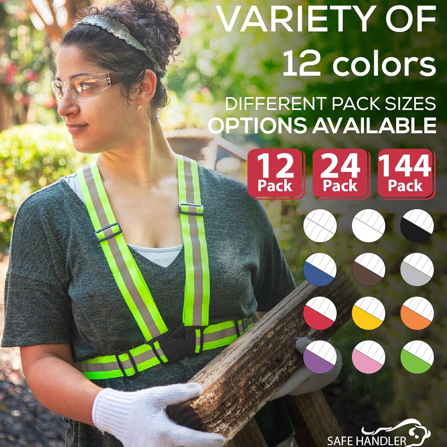 - SAFE HANDLER by Bison Life - Hyline Safety Glasses, Clear Lens Color Temple, 12 assorted colors in one box, 1 of each color: pink, red, orange, yellow, purple, green, black, turquoise, grey, blue, brown, clear