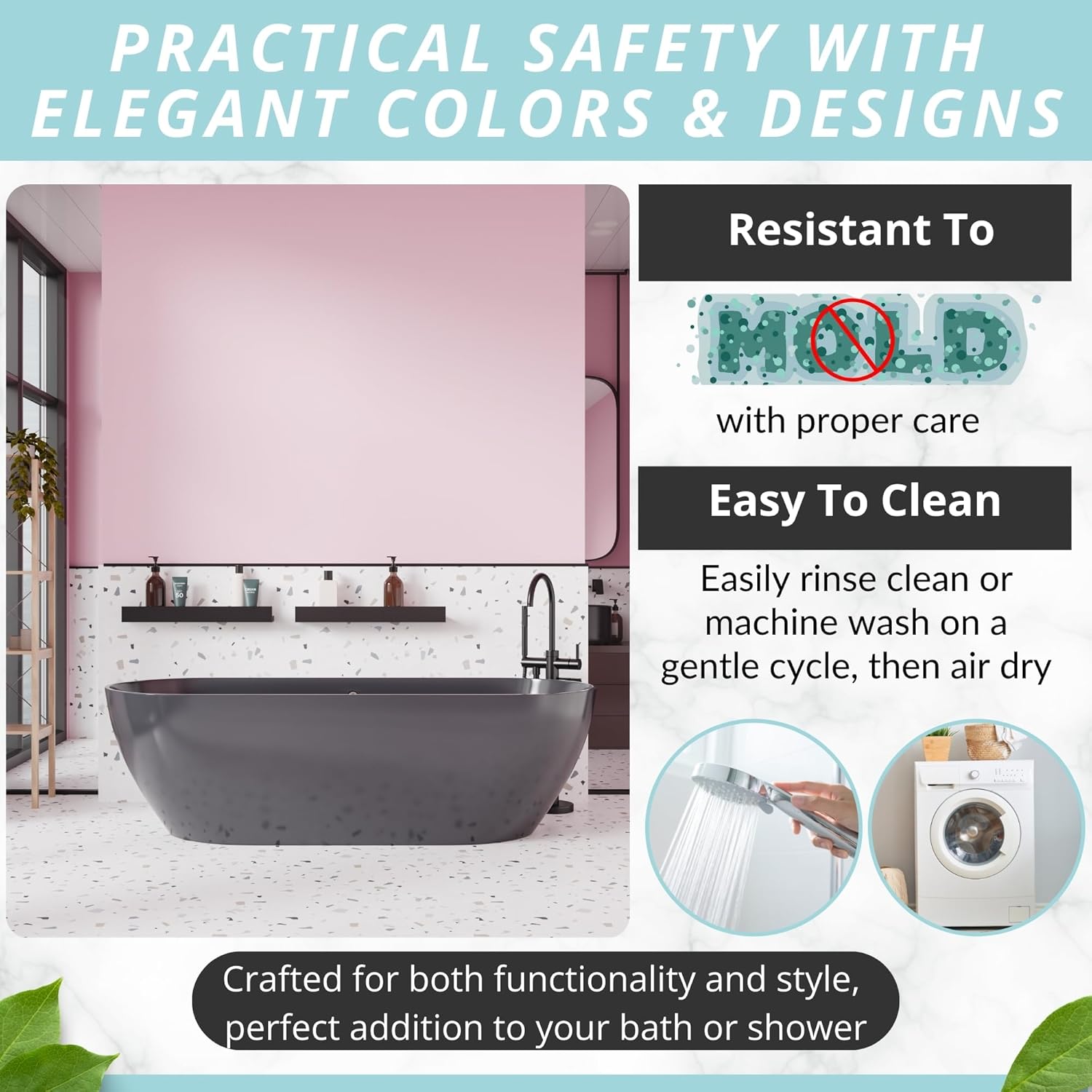 - Modern, Sturdy & Made To Last: Complement your stylish bath rugs décor with an eye-catching bath mat in many color variations. Place it in the washing machine, to keep it fresh, clean and hygienic for a long time!