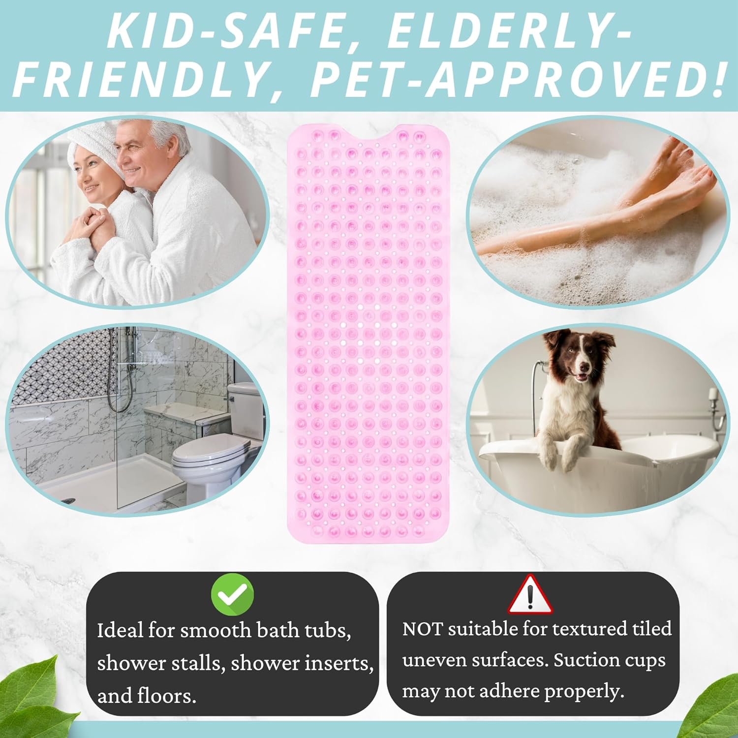 - Great For The Elderly, The Babies & Young Children: Nonslip & generously sized, the Enkosi bath mat ensures the safe bathing & showering of your baby, toddler, as well as your elderly parents or grandparents