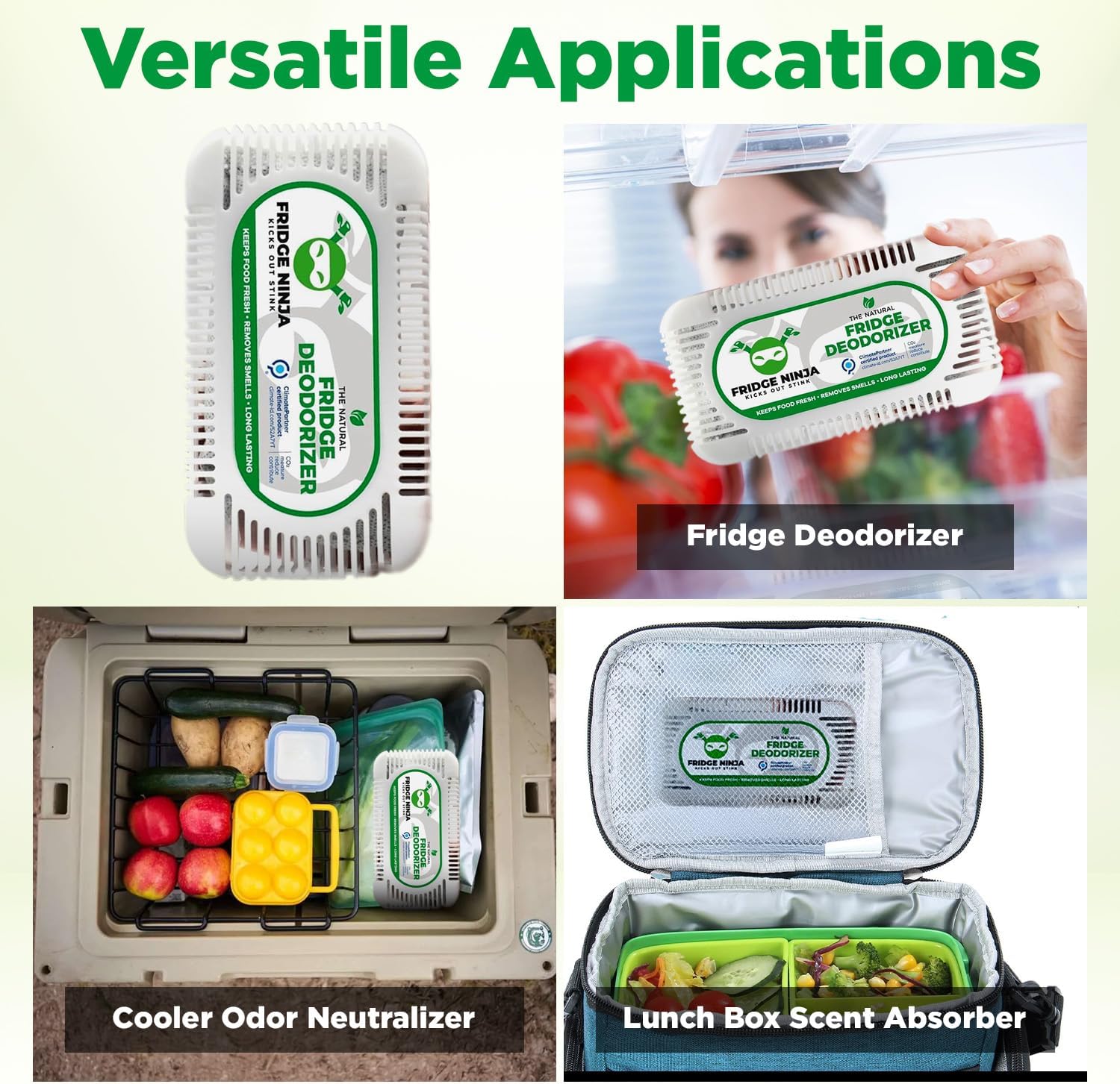 - VERSATILE APPLICATIONS: Fridge Ninja is one of the best refrigerator accessories for banishing bad smells from your refrigerator. But it has multiple alternative uses. Toss it in a cool box or lunch bag as a scent absorber and odor neutralizer on the go!