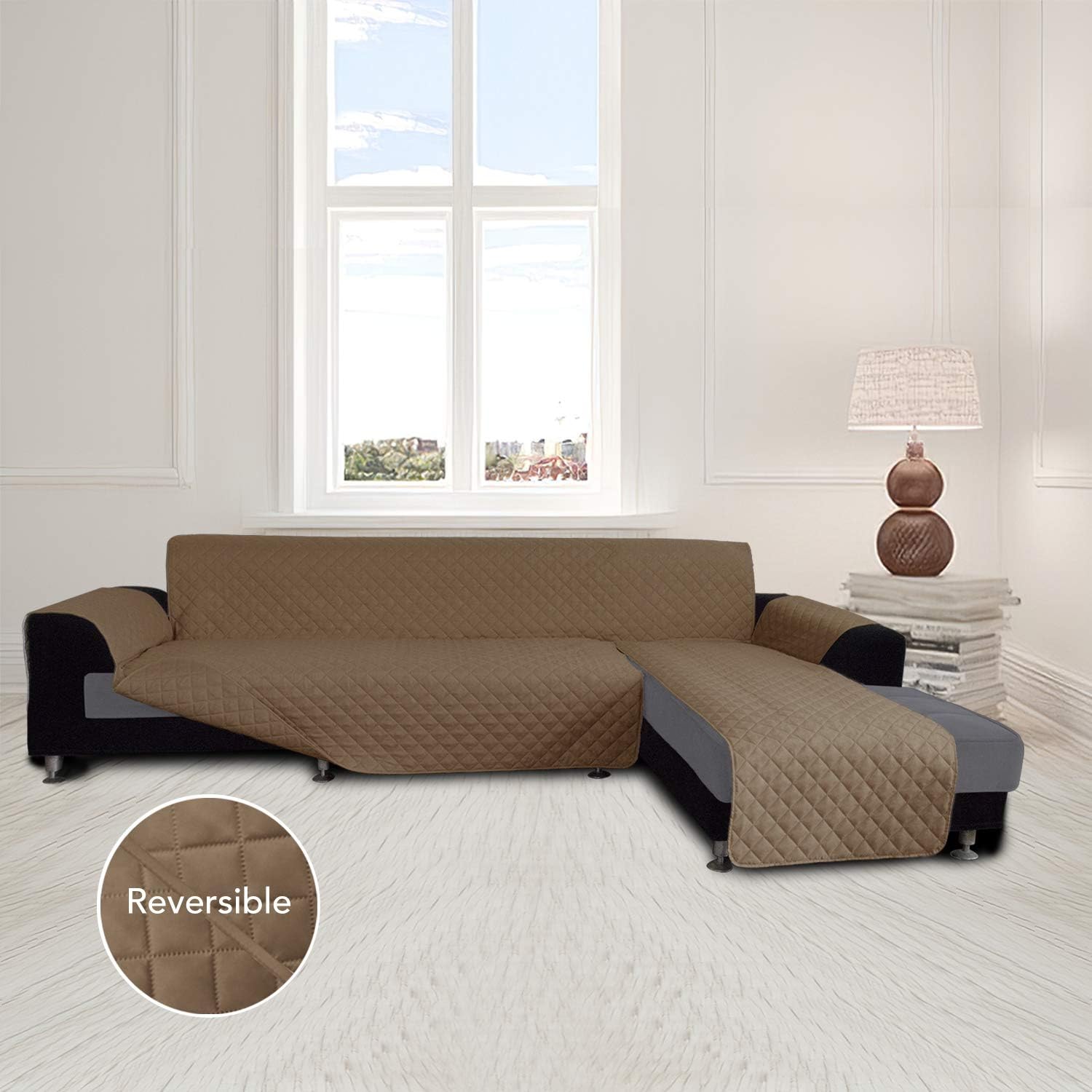 Easy-Going Sofa Slipcover L Shape Sofa Cover Sectional Couch Cover Chaise Lounge Slip Cover Reversible Sofa Cover Furniture Protector Cover for Pets Kids Children Dog (Large,Camel/Camel)