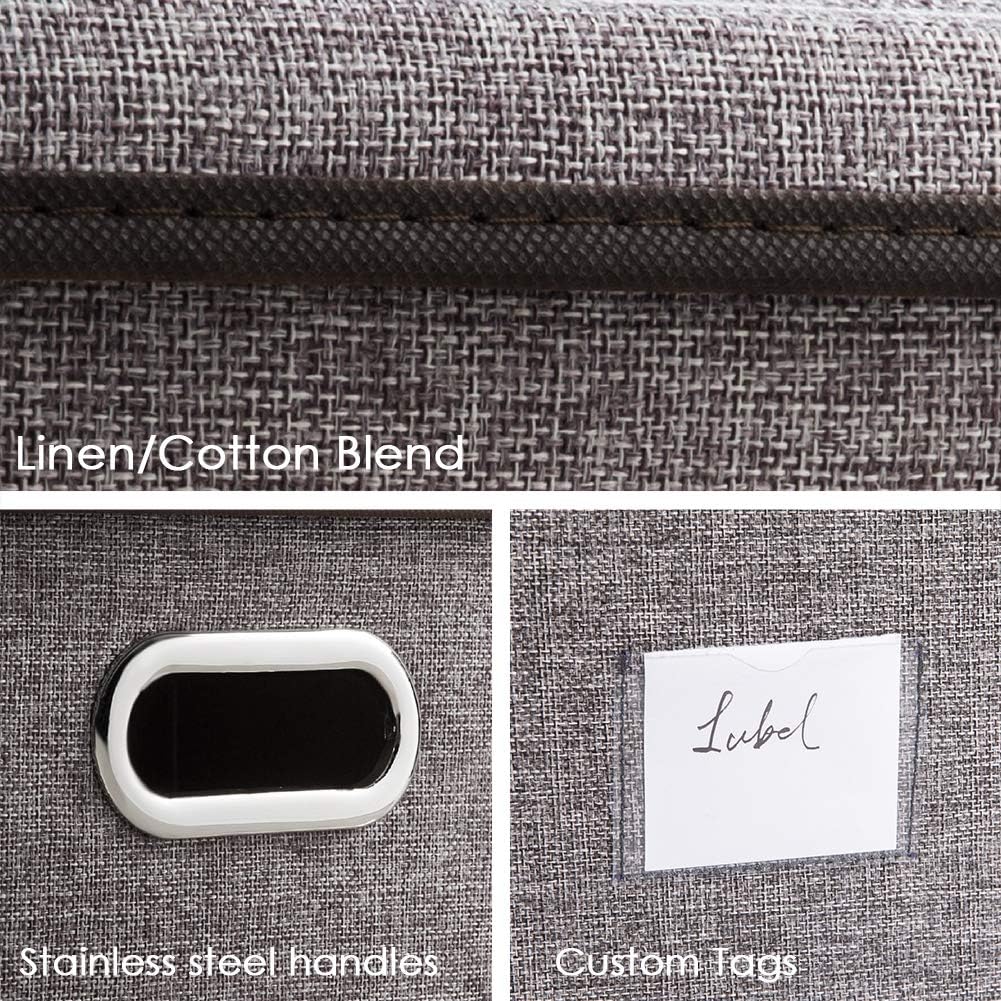 PRANDOM Extra Large Collapsible Storage Bins with Lids [3-Pack] Linen Fabric Foldable Storage Baskets Boxes Organizer Containers Cube with Cover for Bedroom Closet Office Nursery (22.8x15.75x13.8)