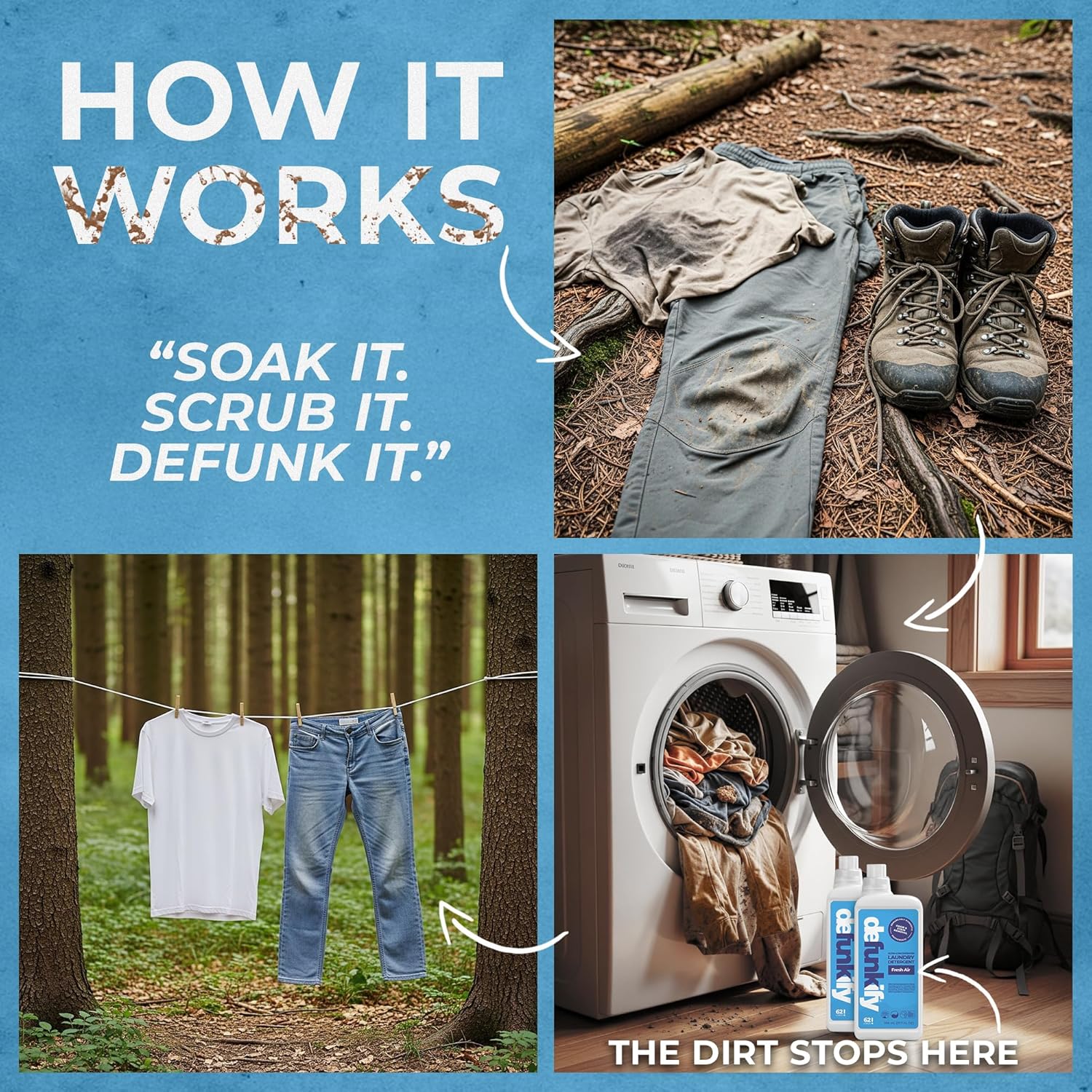 - '𝗪𝗮𝘀𝗵 𝘁𝗵𝗲 𝗙𝘂𝗻𝗸 𝗢𝘂𝘁!' 𝗚𝘂𝗮𝗿𝗮𝗻𝘁𝗲𝗲: Defunkify's laundy detergent enzymes clean deep within fabric fibers to eliminate the residue, oils, sweat & heavy cover-up scents left behind by other washing detergents. As a lightly scented 'Fresh Air' laundry detergent w/ all natural old odor eliminator & set-in stain remover ingredients, 𝘆𝗼𝘂𝗿 𝗰𝗹𝗼𝘁𝗵𝗶𝗻𝗴 𝘄𝗶𝗹𝗹 𝗯𝗲 𝗹𝗼𝗼𝗸𝗶𝗻𝗴 & 𝗳𝗲𝗲𝗹𝗶𝗻𝗴 𝗹𝗶𝗸𝗲 𝗻𝗲𝘄 𝗶𝗻 𝗮 𝘀𝗶𝗻𝗴𝗹𝗲 𝘄𝗮𝘀𝗵, 𝗴𝘂𝗮𝗿𝗮𝗻𝘁𝗲𝗲𝗱.