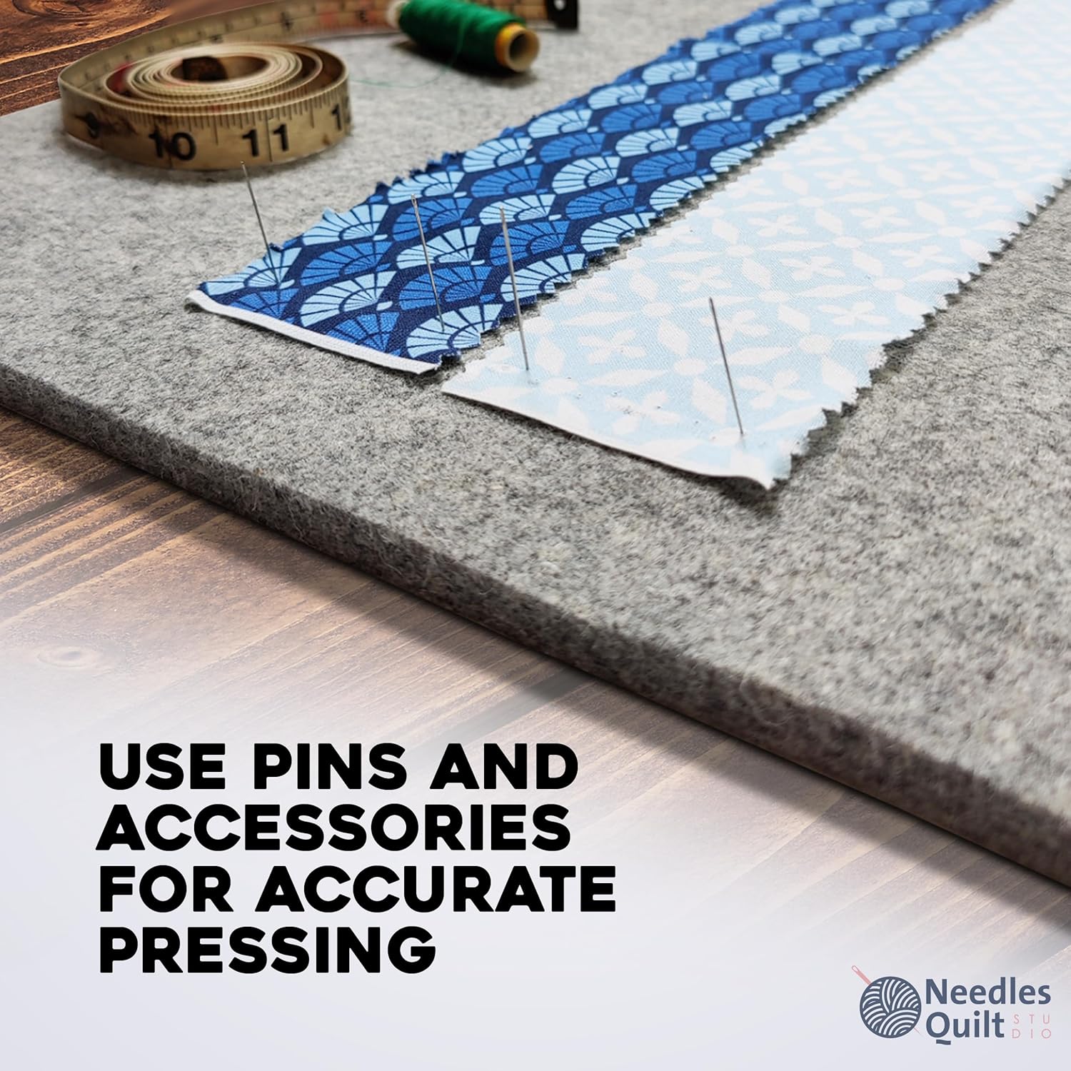 - Use Pins & Accessories - To get the most accurate pressing results out of your wool pressing mat for quilting, use pins or other notions to position your fabric while you press! Or even roll it up and use it as a portable ironing mat for table top!