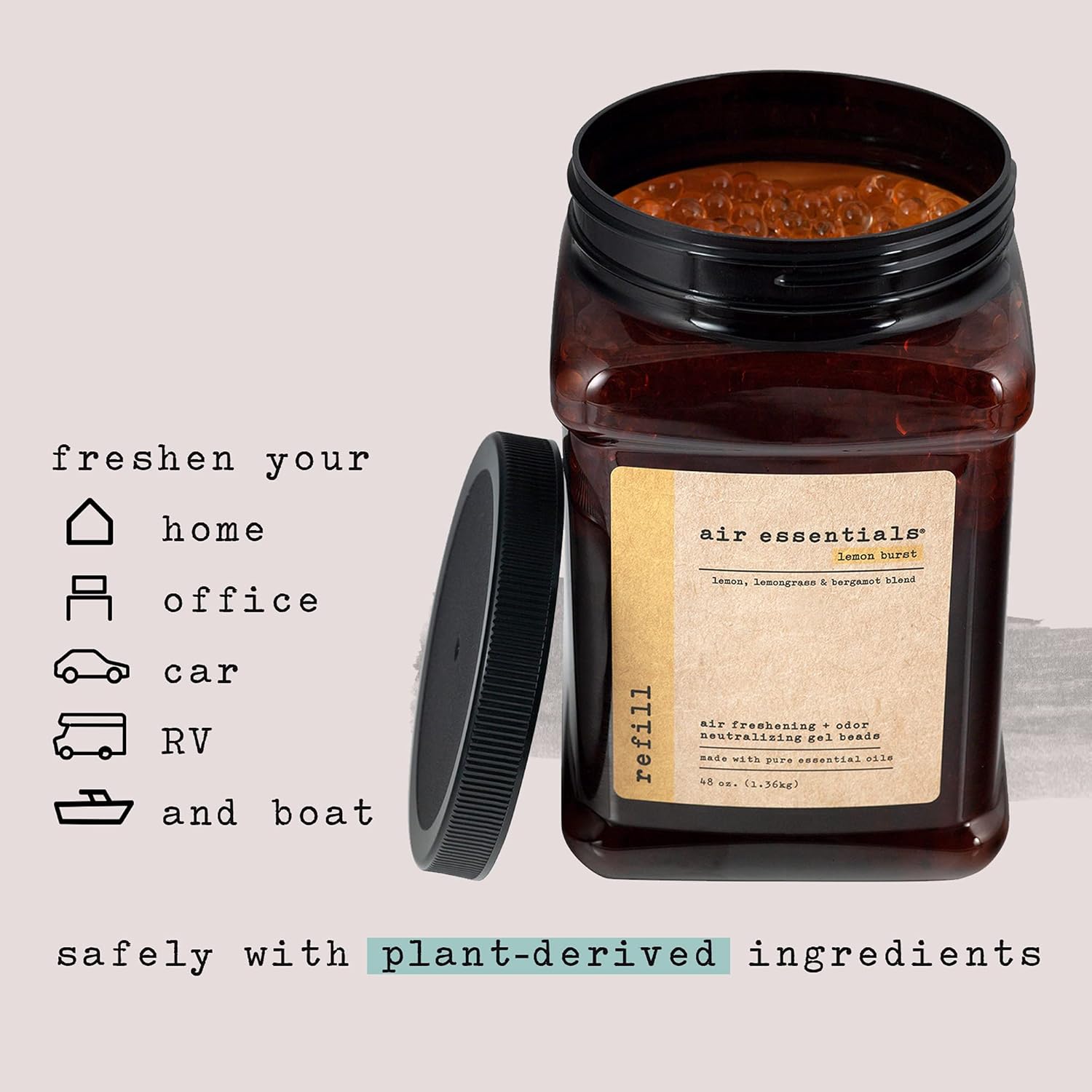 - NEUTRALIZE RECURRING ODORS - Freshen your home, office, car, RV, and boat safely with plant derived ingredients and pure essential oils. The Gel Beads will neutralize odors from smoke, garbage cans, pet areas, food, cooking and anywhere recurring odors are a problem. Pour the Gel Beads into an existing Air Essentials 12 ounce jar or your favorite vase or bowl for added decoration.