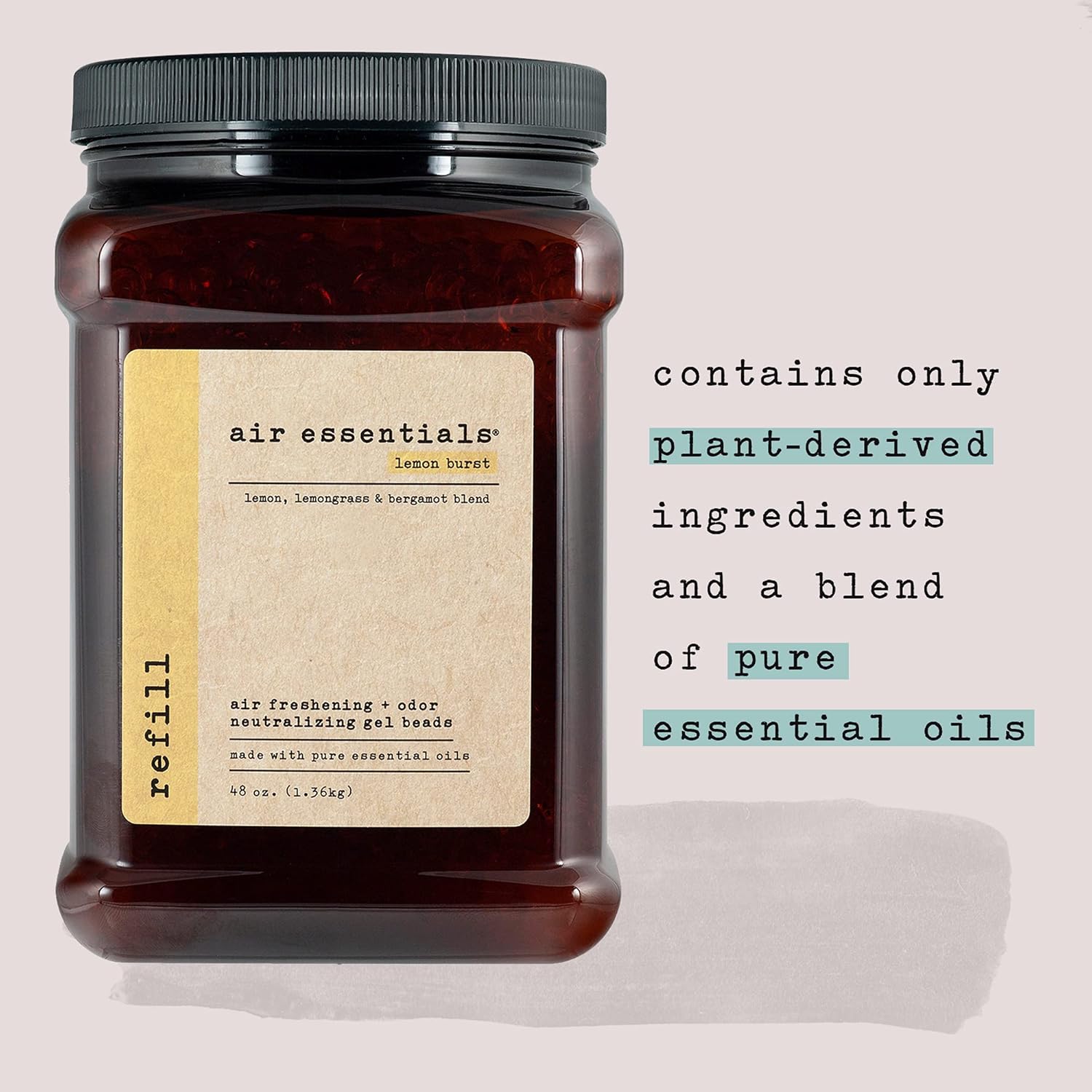 Air Essentials Air Freshener & Odor Neutralizer Gel Bead 48 oz Refill – Odor Eliminator - Made with Pure Essential Oils – Lemon Burst Scent
