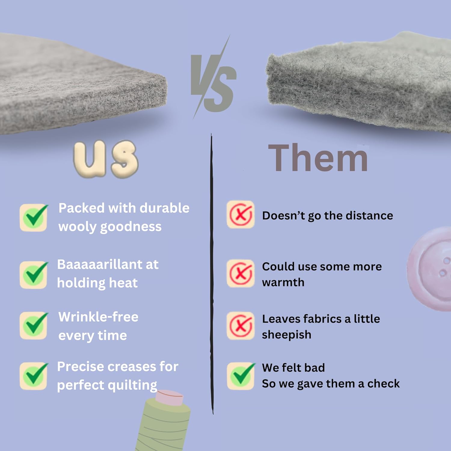 - SUPERIOR MERINO WOOL, Crafted for Serious Quilters. Made from 100% Merino wool for superior heat retention and durability. Enjoy a smoother, more efficient pressing experience, ensuring consistent, professional results with every press. Perfect for quilters who demand top performance.