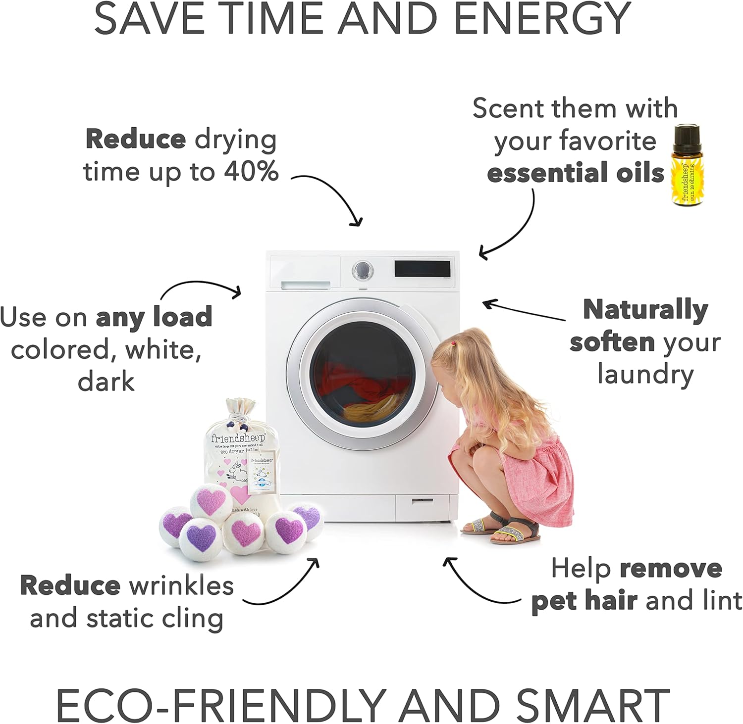 - ECO-FRIENDLY AND REUSABLE FOR 1000+ LOADS, replaces dryer sheets & liquid fabric softeners. Makes your laundry soft and fluffy, reduces wrinkles and static cling, and shortens drying time by up to 40% depending on load size. Your sheets and towels are fluffier, less balling and twisting. Makes you SAVE TIME, ENERGY, AND MONEY! All by keeping safe and healthy you, your family and the environment.