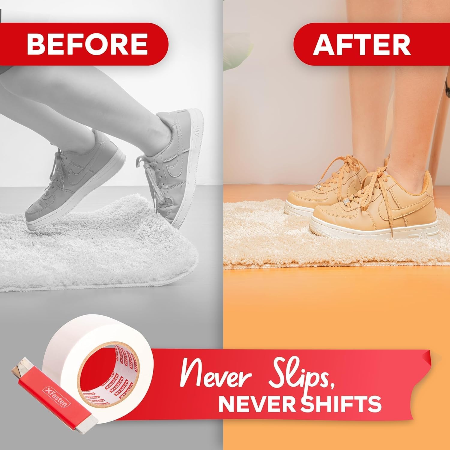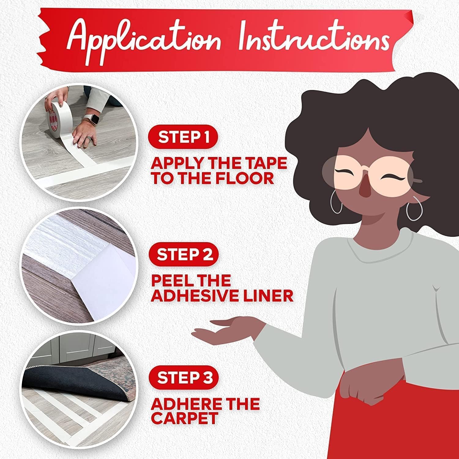 - All-Surface Hold - Designed as rug grippers for area rugs on hardwood floors and as double sided rug tape for vinyl, concrete, or carpet over carpet setups.
