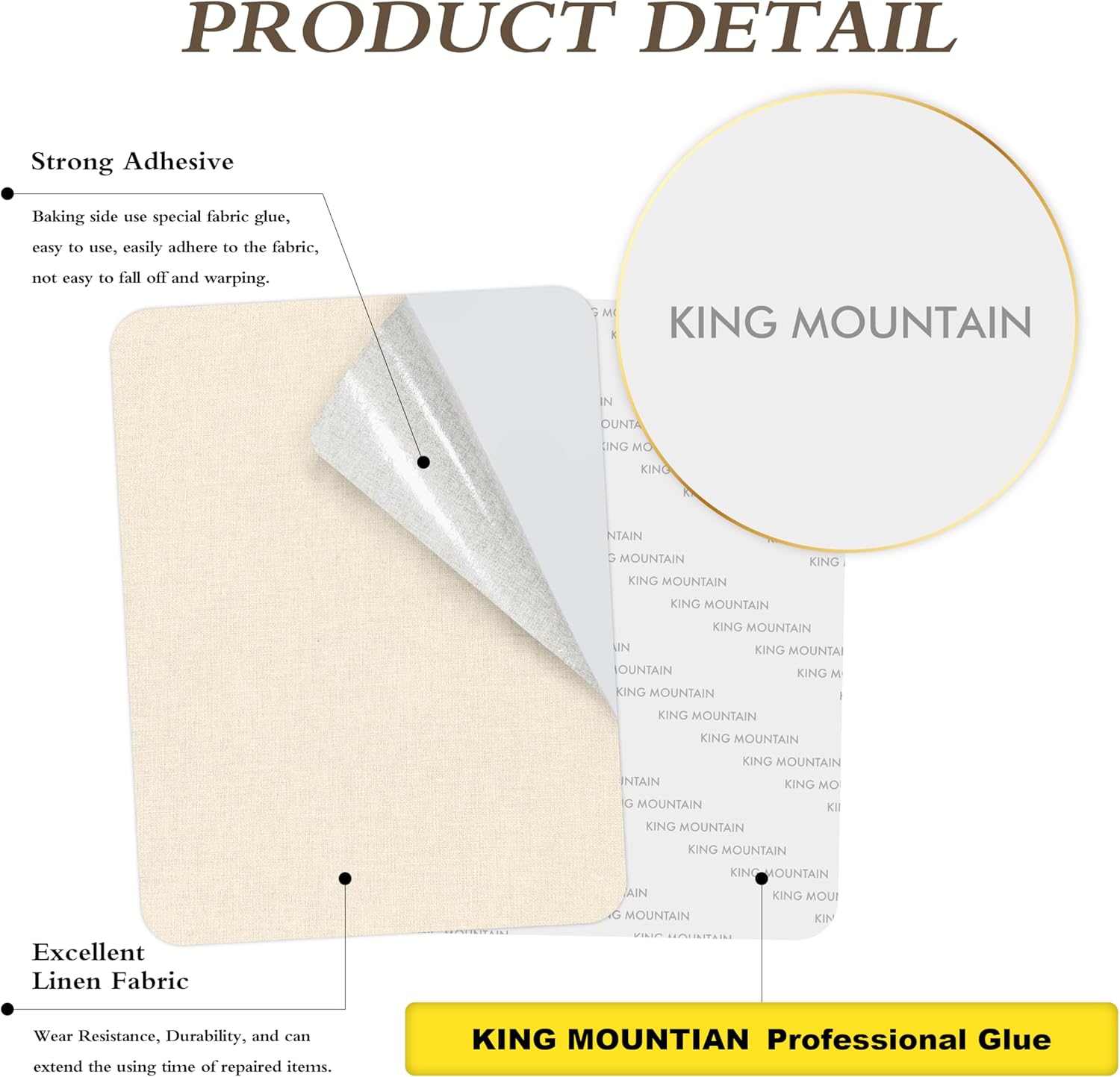 KING MOUNTAIN Fine Linen Repair Patches, Self-Adhesive, Off White, 8" x 11", Multi Color, Can Be Used for Linen Sofa and Clothes Repair
