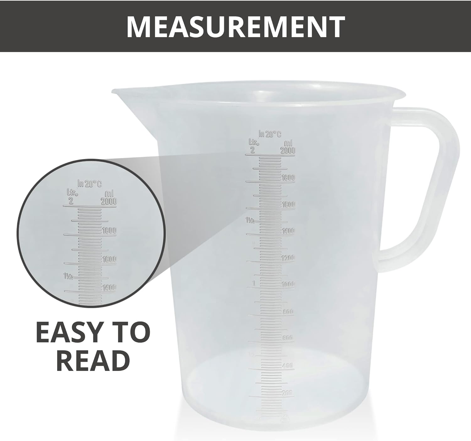 - Multipurpose Use - This 2000ml graduated plastic pitcher, also known as a plastic measuring & mixing pitcher, finds extensive applications in laboratories, tea shops, bakeries, bars, restaurants, and kitchens. It is suitable for precise measurements of water, flour, rice, coffee, wine, milk, sugar, and more.