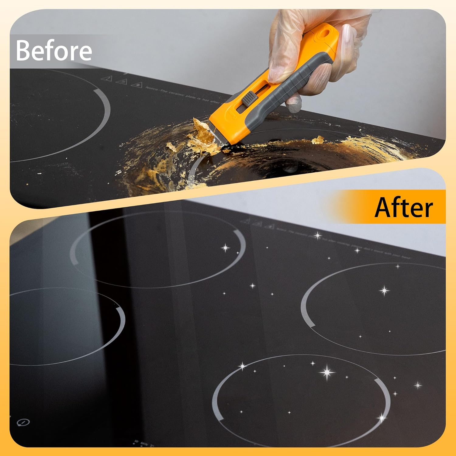 - Perfect for use on glass, ceramic, and induction stovetops and cooktops, and is great for removing burnt food and gunk, as well as scraping off in the bathroom. It is also effective for removing a variety of other materials, including window paint, shims, paints, stickers, coloring film residues, wallpaper, and borders around the house