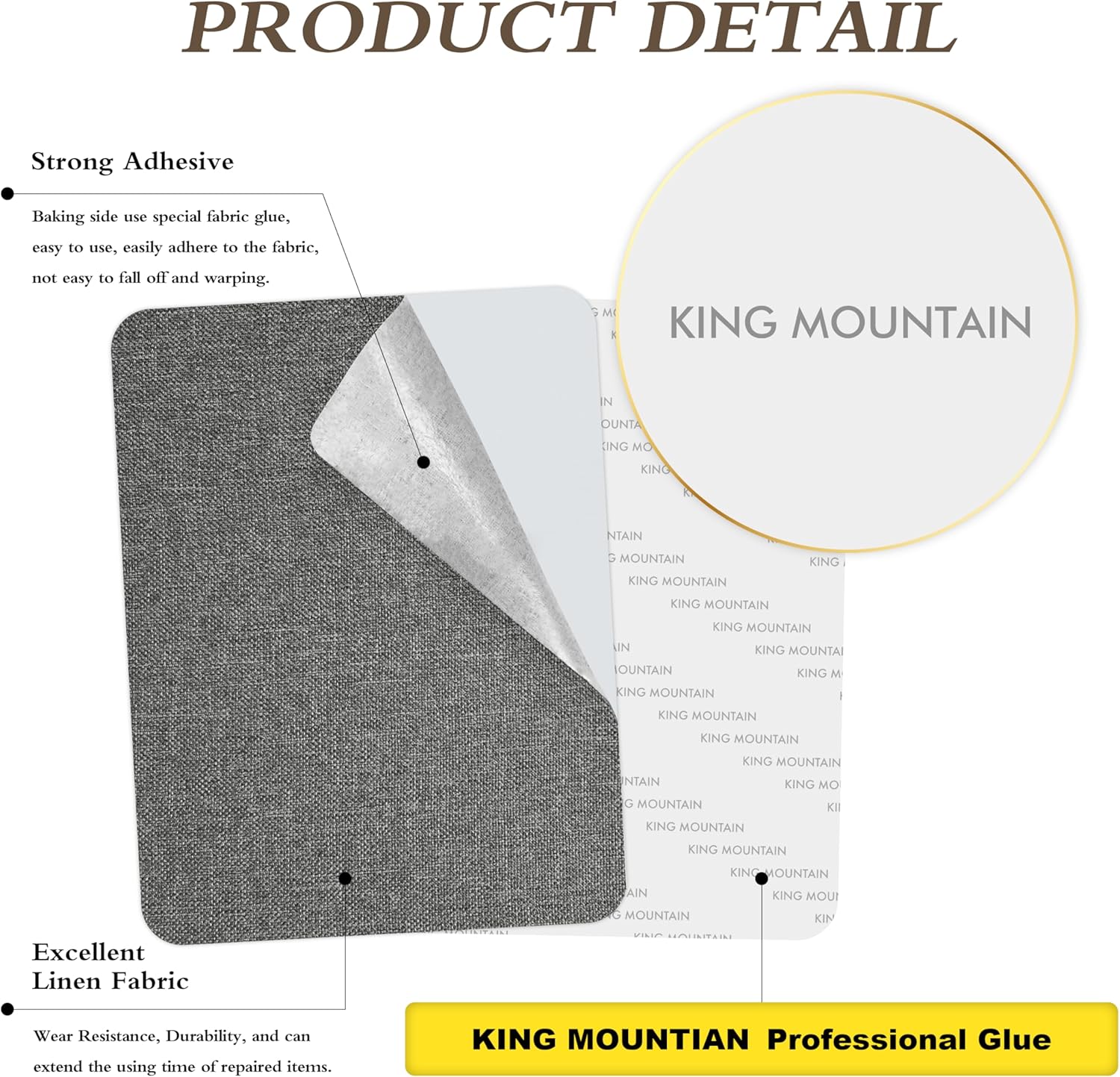KING MOUNTAIN Fine Linen Repair Patches, Self-Adhesive Linen Fabric Patches, 8X11 inch Extra Size, Multi Color, Can be Used for Linen Sofa Repair and Linen Clothes Repair(8" x 11",Medium Grey 1.0)
