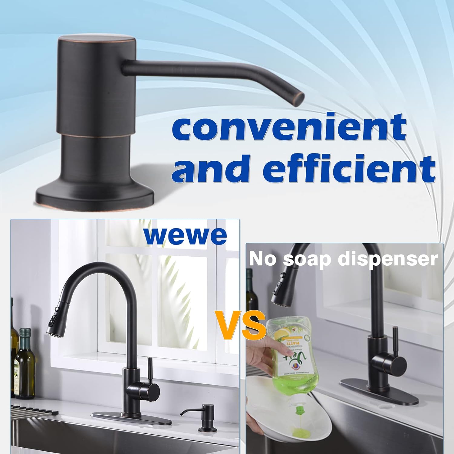 - No More Mess: Fitting a long tube kit, the oil rubbed bronze soap dispenser has 360 degree free rotation, meets different hand washing position at any time.
