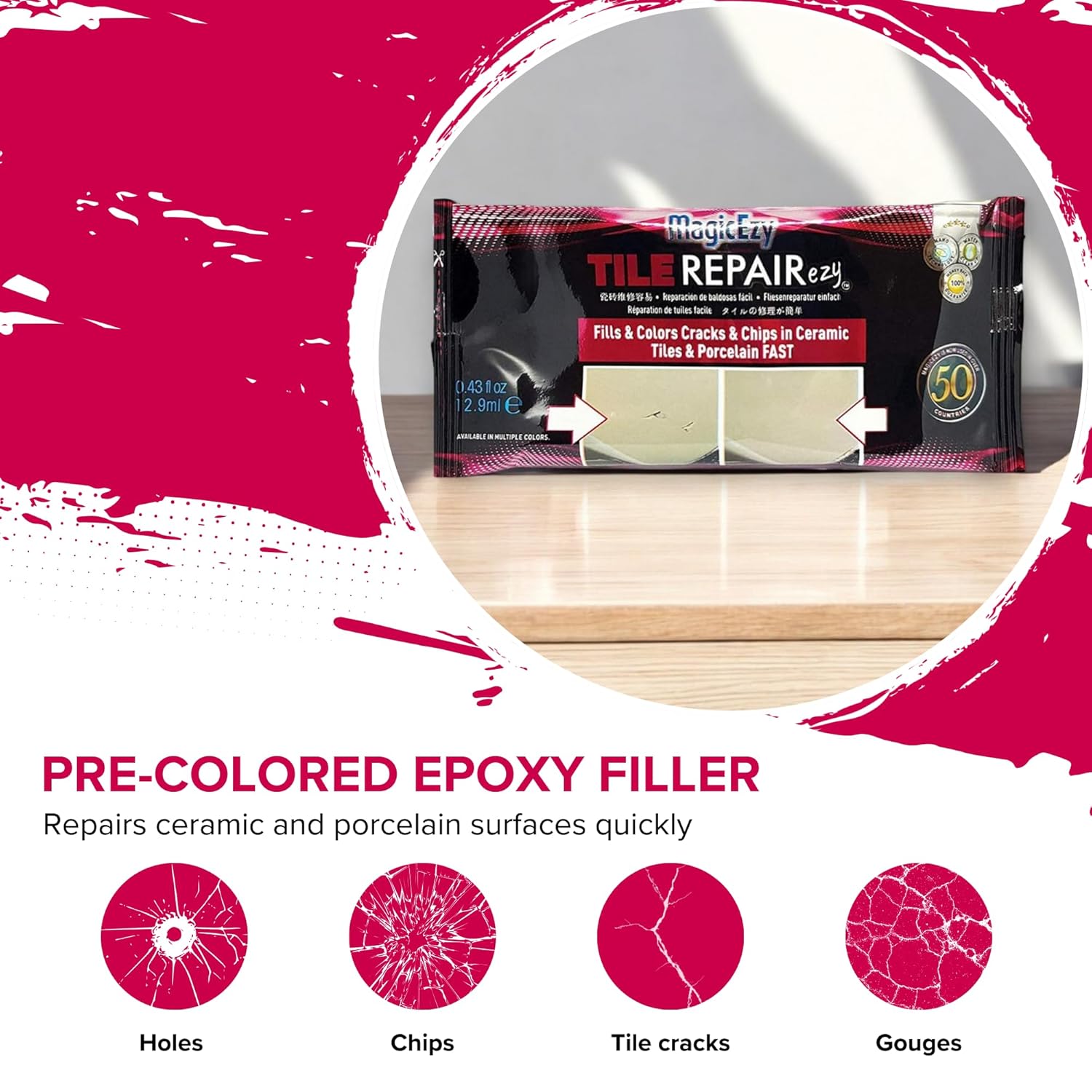 - SUPER STRONG AND DURABLE, COLORED PORCELAIN TILE REPAIR FILLER - powered by revolutionary nanotechnology for long-lasting broken tile repairs. It's a tile repair paint mixed with a super strong tile filler.