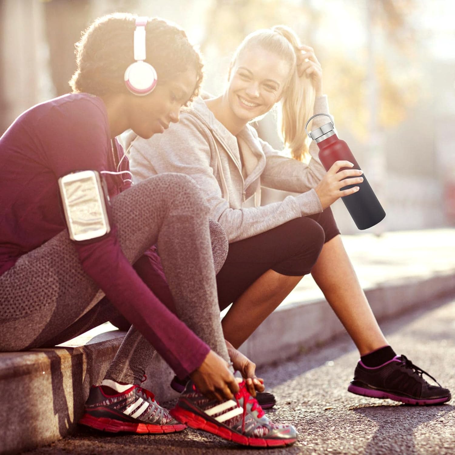 - PERFECT SIZE AND KEEP WARM FOR A LONG TIME: Our double wall insulation bottle protects temperature for up to 12 hours . The 20 oz stainless steel water bottle is perfect for everyday use and the cups fit on the bike cup holder and inside the backpack for your hiking, biking, beach, camping and fitness