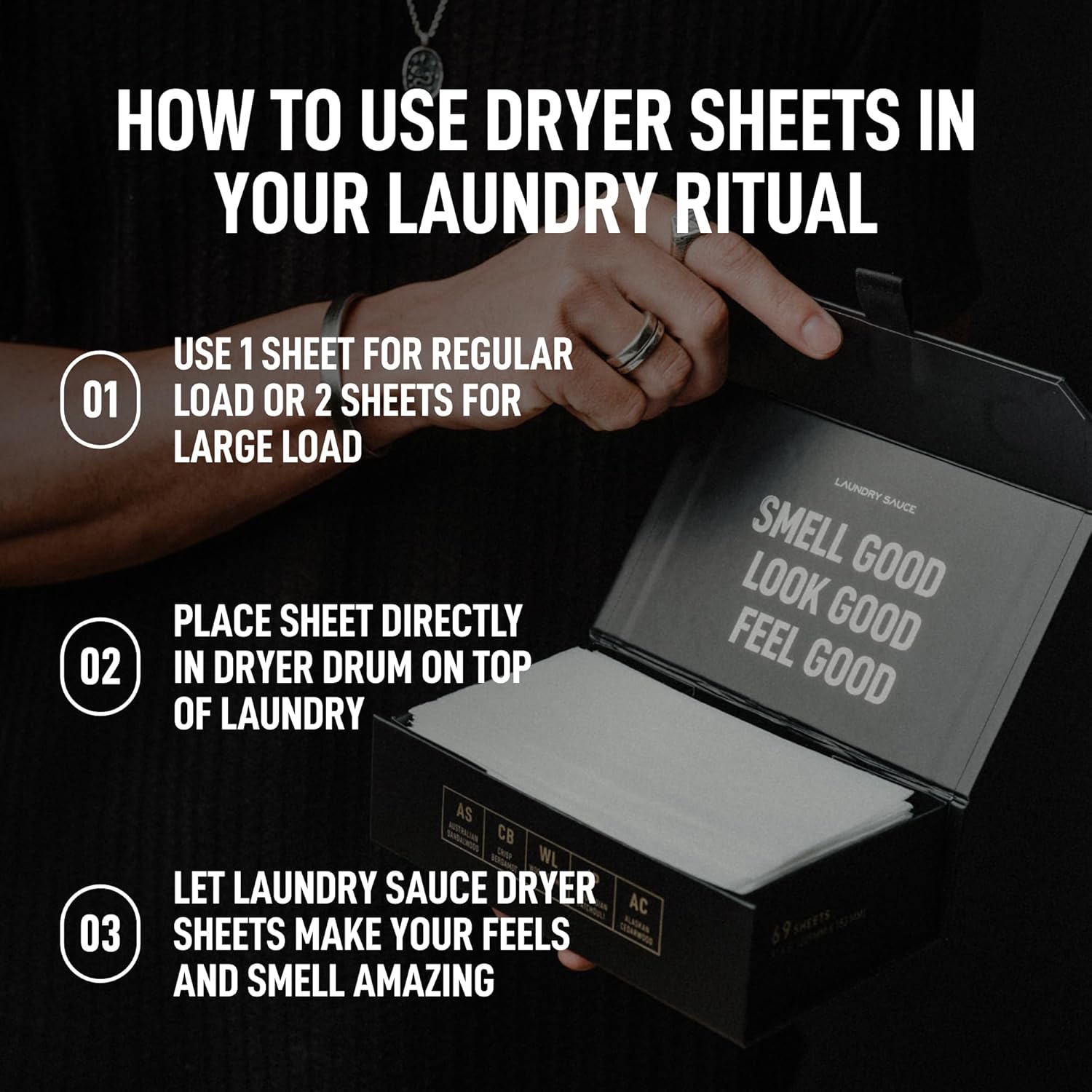 Laundry Sauce - Laundry Dryer Sheets (Australian Sandalwood), Luxury Fragrance, Contains Essential Oils, Softens Fabric, Removes Static Cling, Eco-Friendly Packaging, Travel Friendly, 69 Count