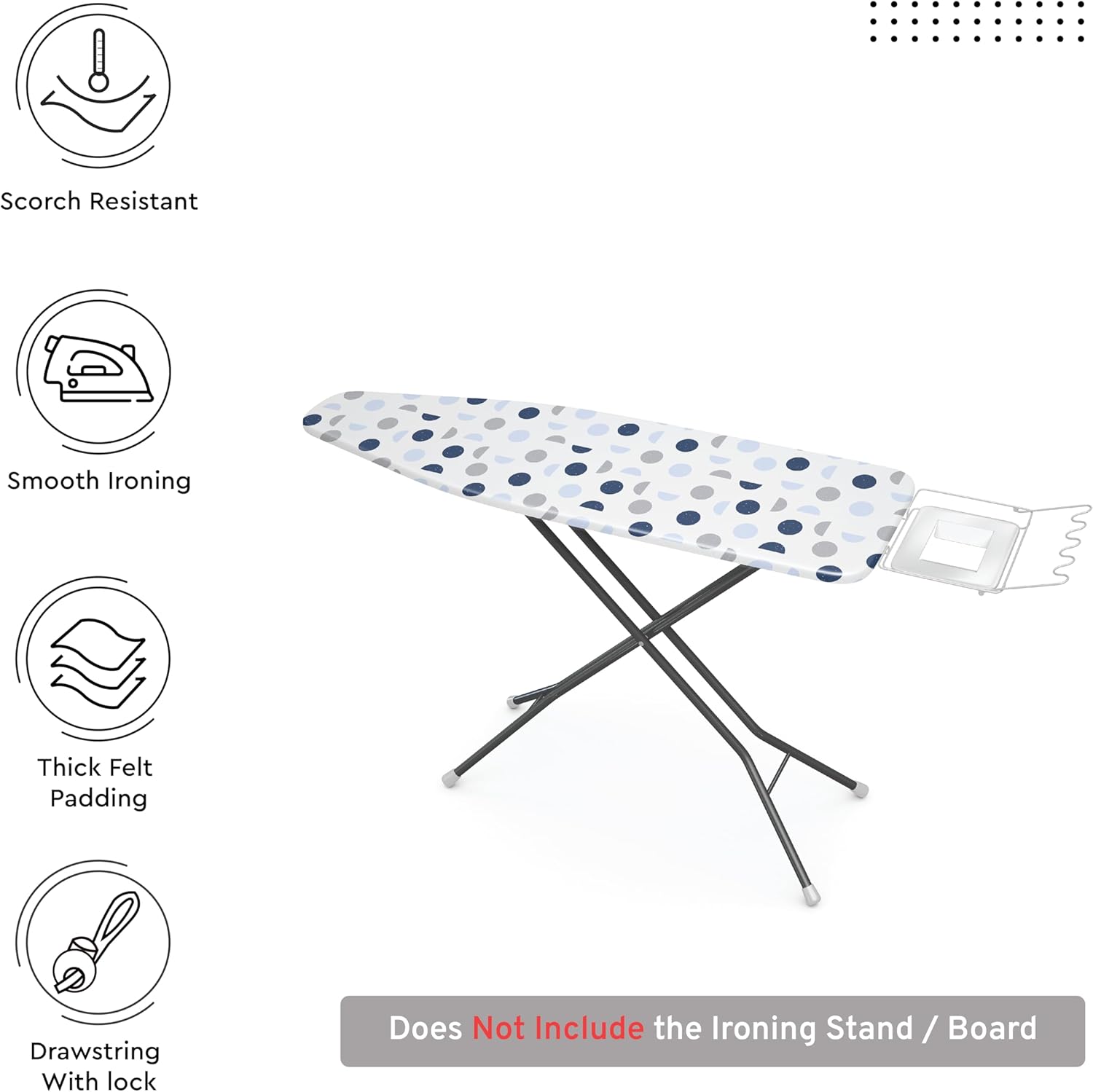 - BETTER IRONING EXPERIENCE: Encasa XO's printed ironing board covers can be fitted with a drawstring and a lock. It consists of 100% cotton fabric and 3mm felt. Get a creaseless fit as you tighten the cover around the board, giving you a wrinkle-free finish to your clothes