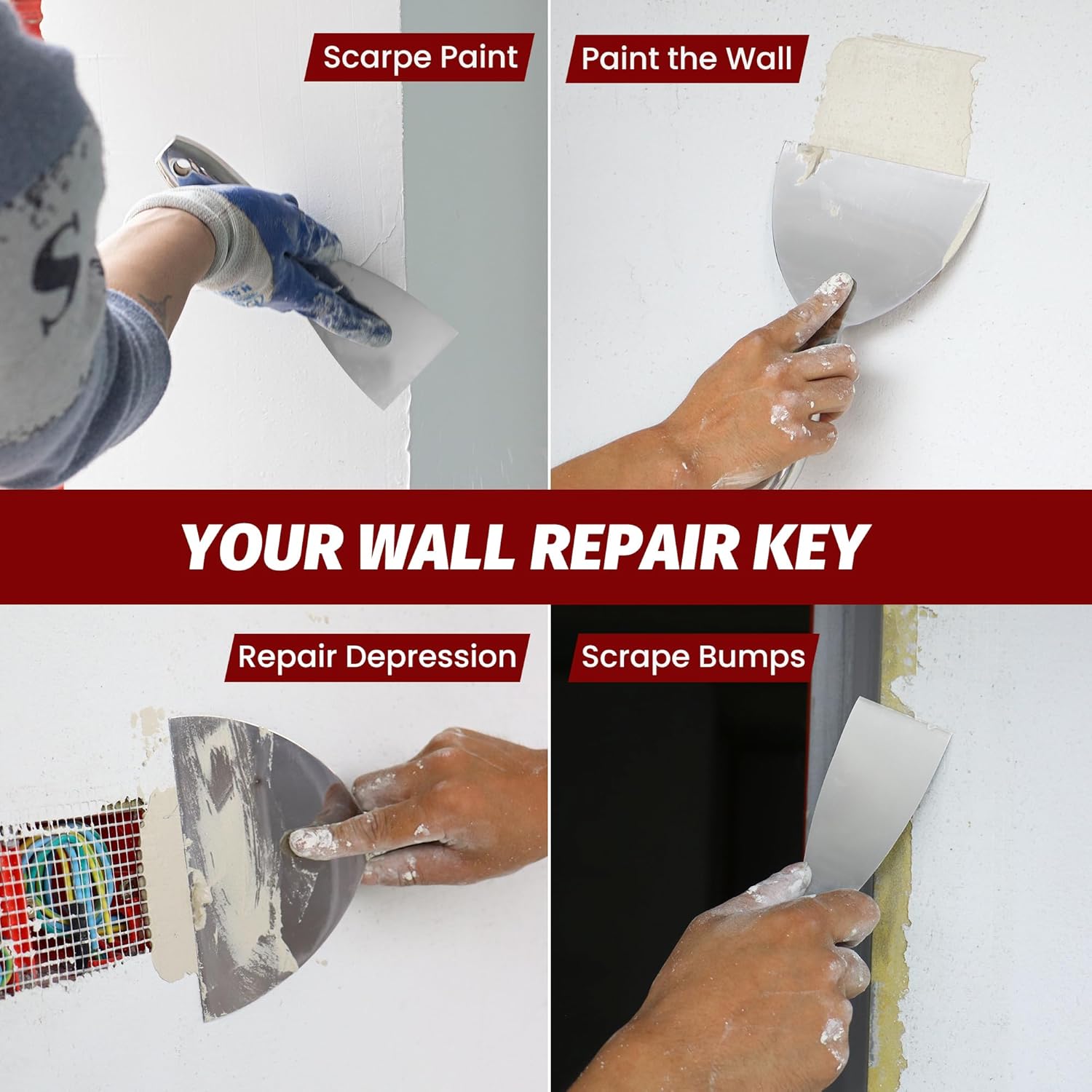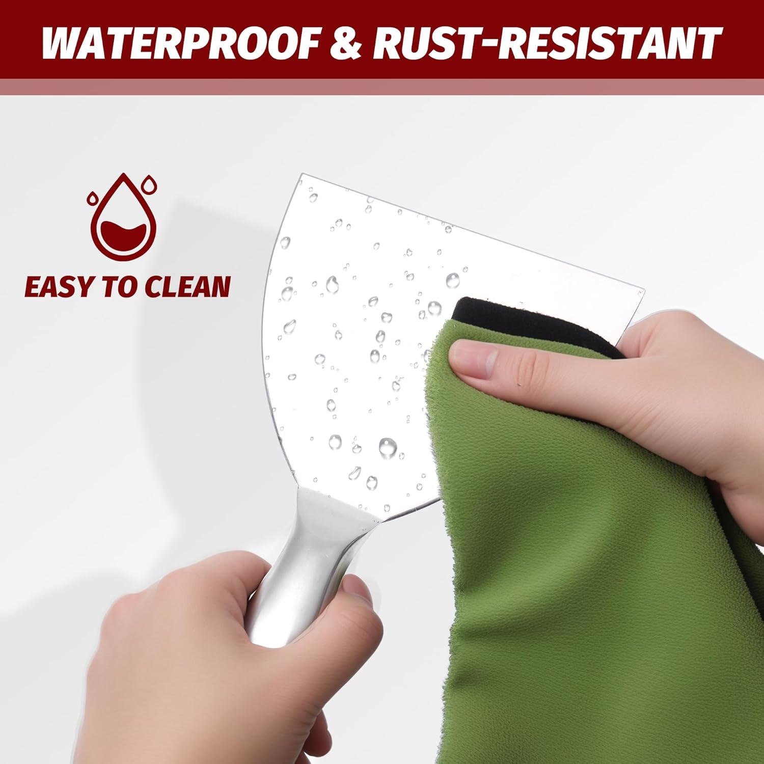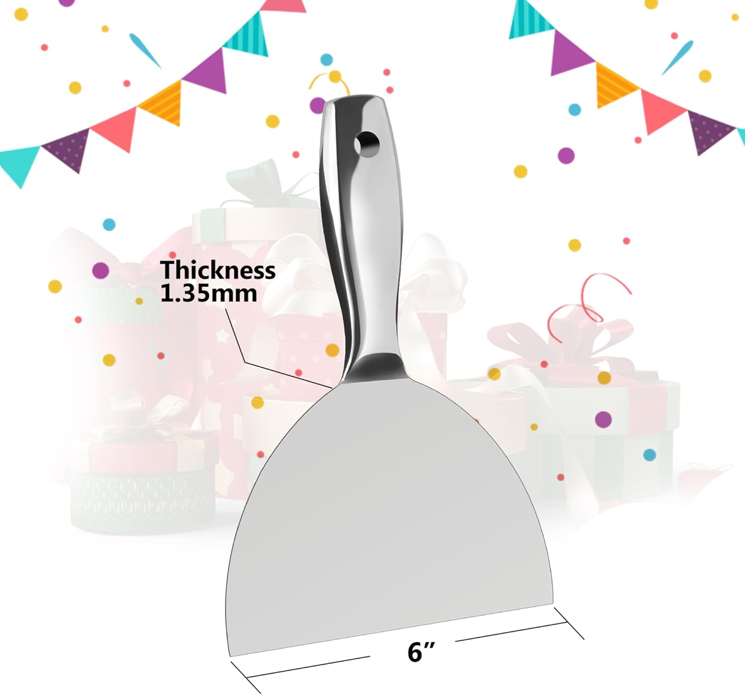 - [ALL STAINLESS STEEL]The putty knives are processed into one piece,that more solid and durable than others.Stainless-steel handle and blade ensure faster application and higher work efficiency