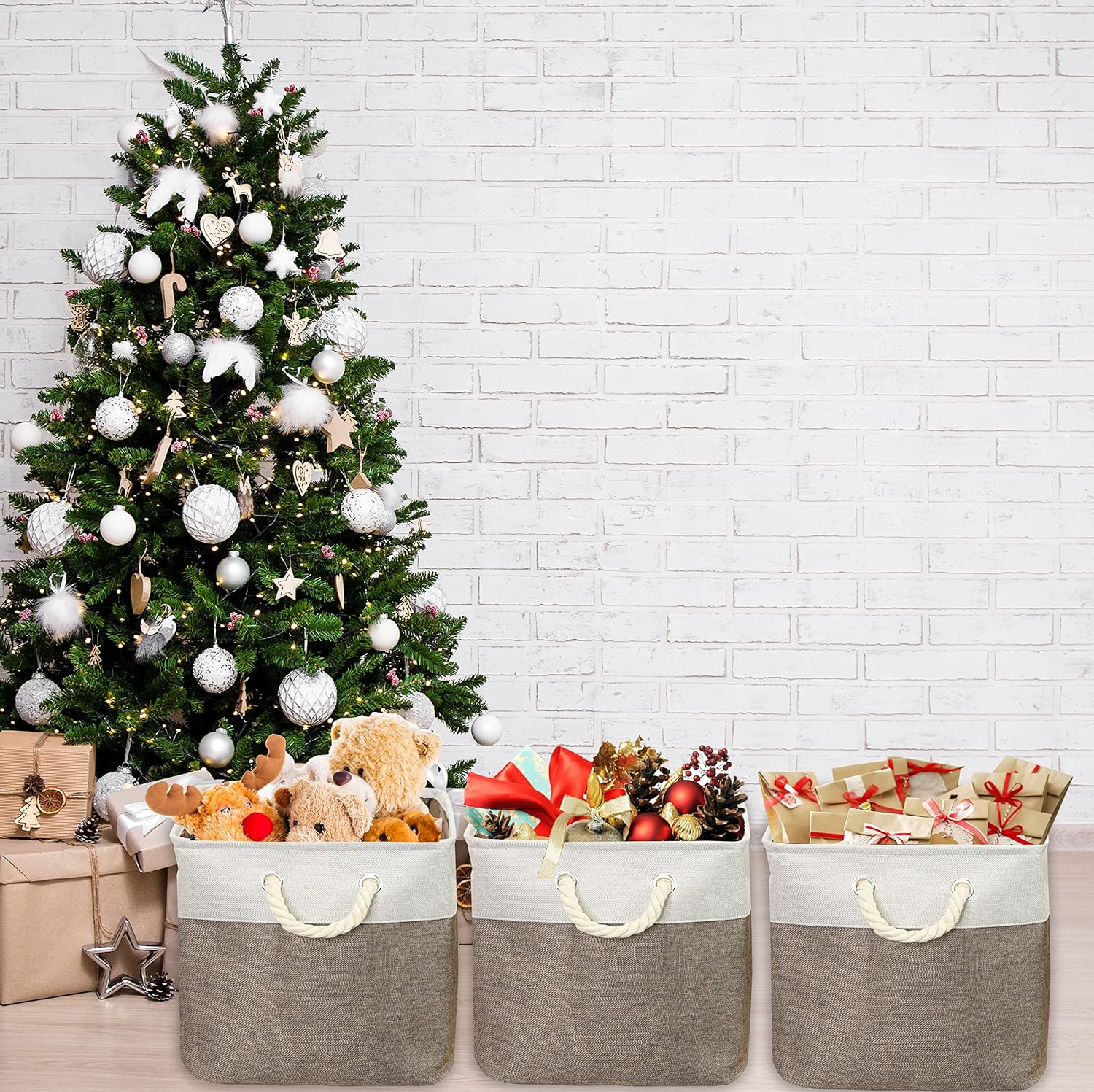- Simple and Decorative: Ideal to fit with interior decoration and put in your bathroom, living room, bedroom, or kitchen. Collapsible bins to save on space when not in use