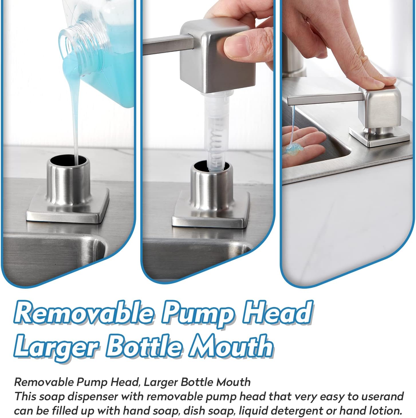 - 💧【FAST AND EASY INSTALLATION】 The kitchen soap dispenser comes with detailed instructions. You can install this kitchen sink soap dispenser on the sink or countertop in a few minutes. Even for lay people, just connect with extension tube kit,use the big bottle directly, skipping the messy for refilling.Then enjoy your new soap dispenser.