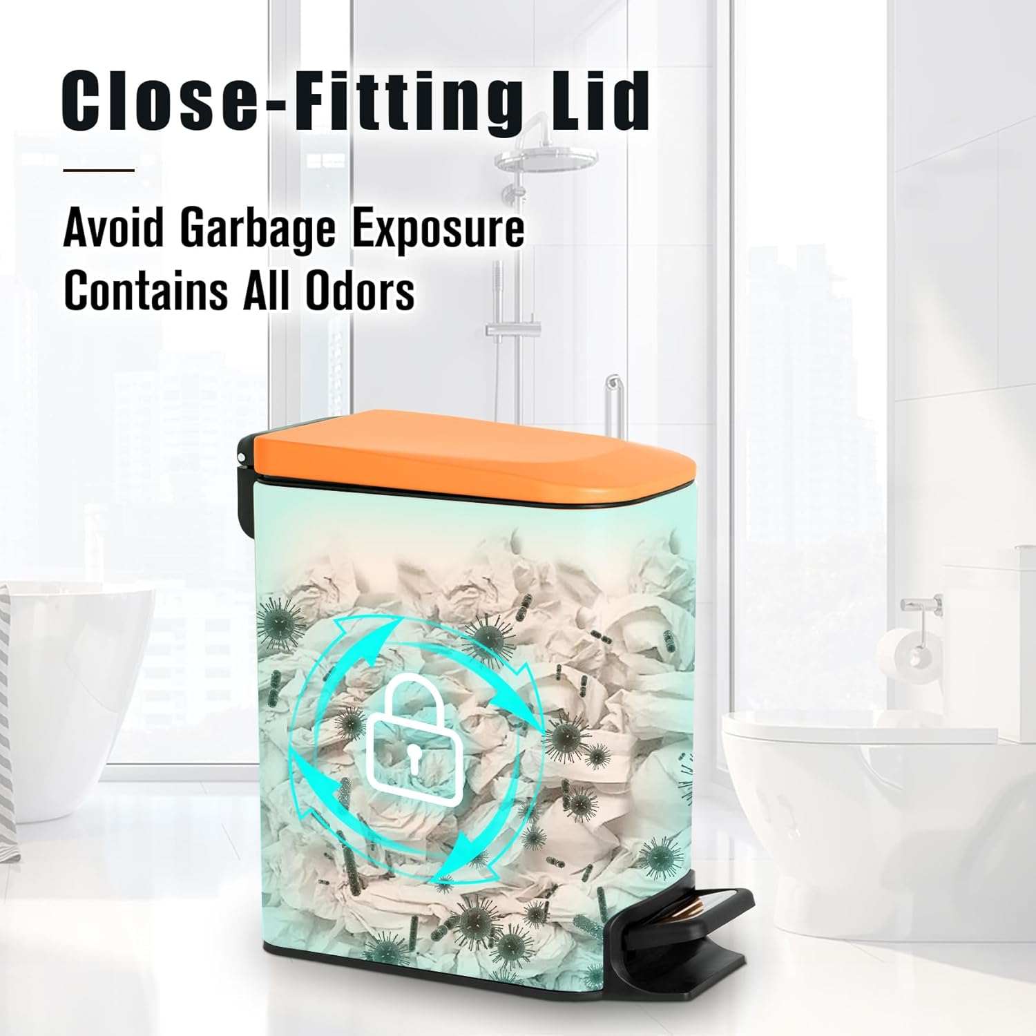 Cesun Small Bathroom Trash Can with Lid Soft Close, Step Pedal, 6 Liter / 1.6 Gallon Stainless Steel Garbage Can with Removable Inner Bucket, Anti-Fingerprint Finish (Matt Orange)