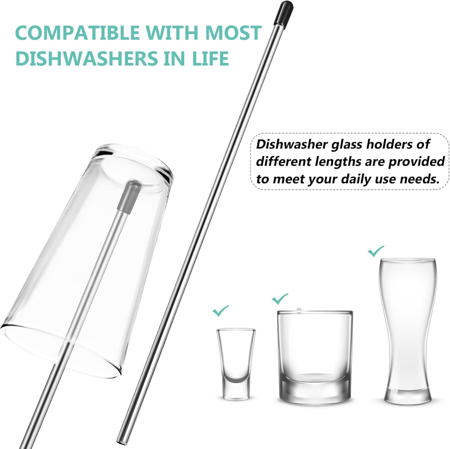 - Dishwasher glass holders of different lengths are provided to meet your daily use needs.