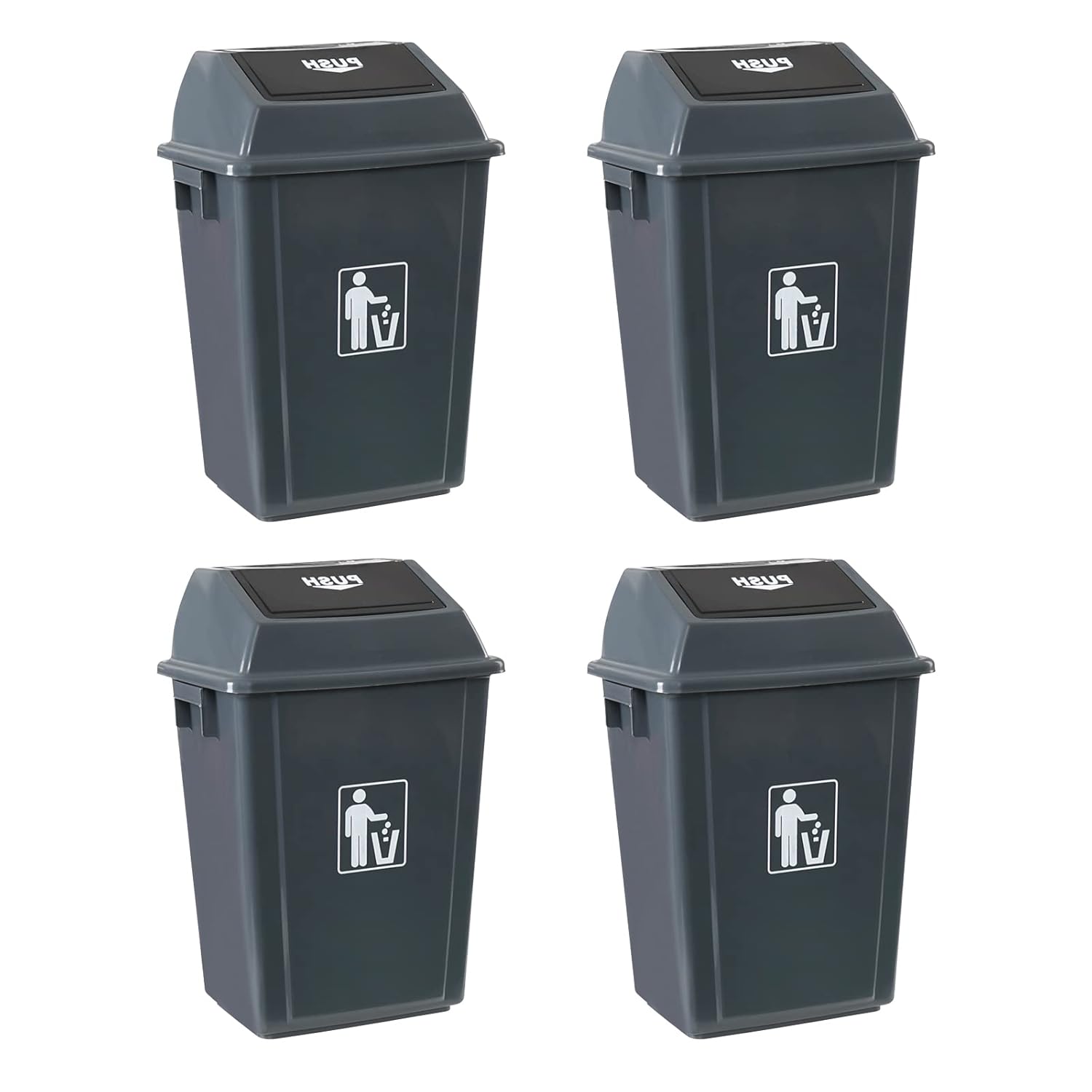- Set of 4 trash bins with lids in gray color, measuring 15.35"*10.63"*23.82"