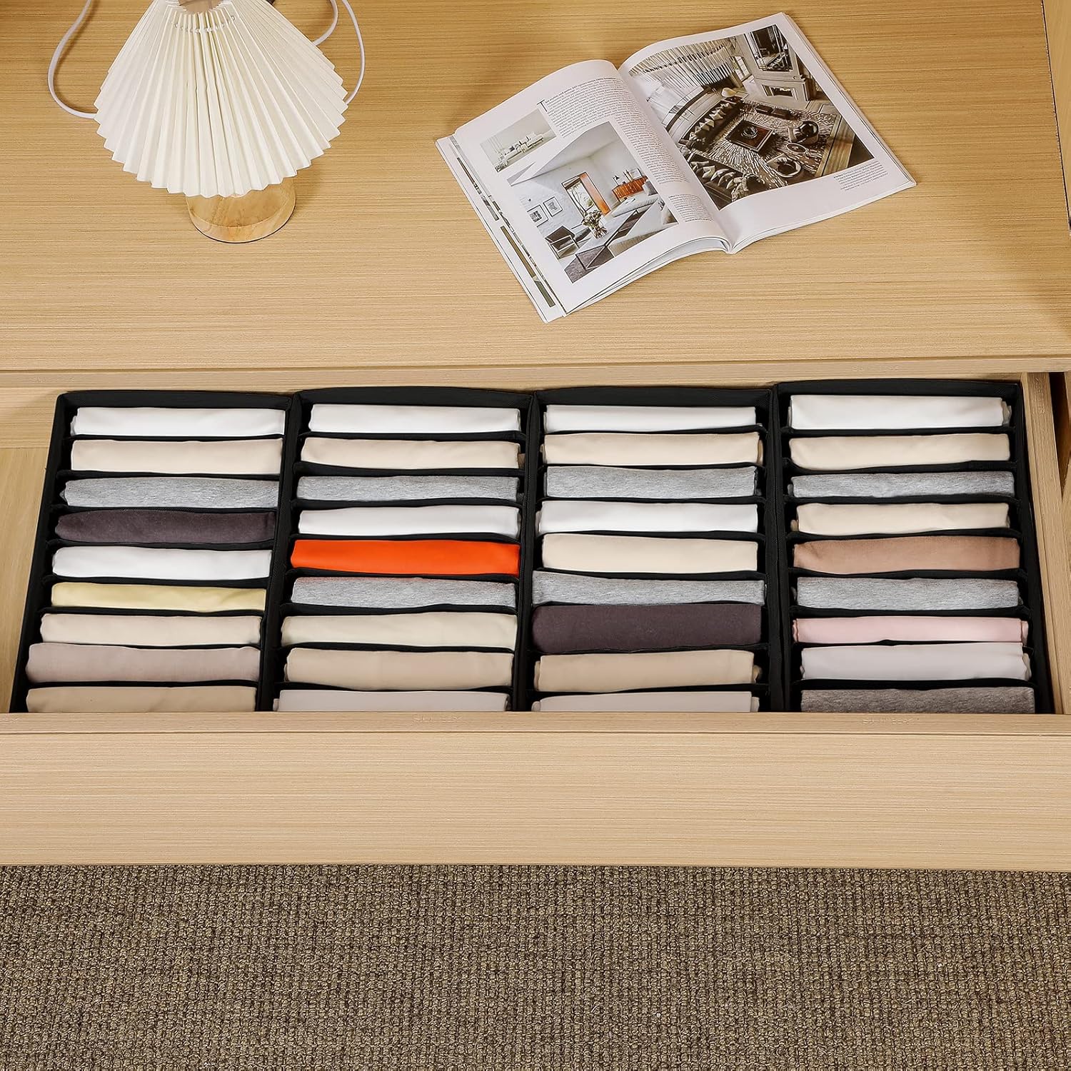 - 【Premium Material】Clothes drawer organizer is made of non-woven fabric with delicate stitching, which is durable and not easy to fade. And the PP board insert on four sides is a great addition to the product. Compared with the old version, our drawer organizer for clothing can keep shape when empty.