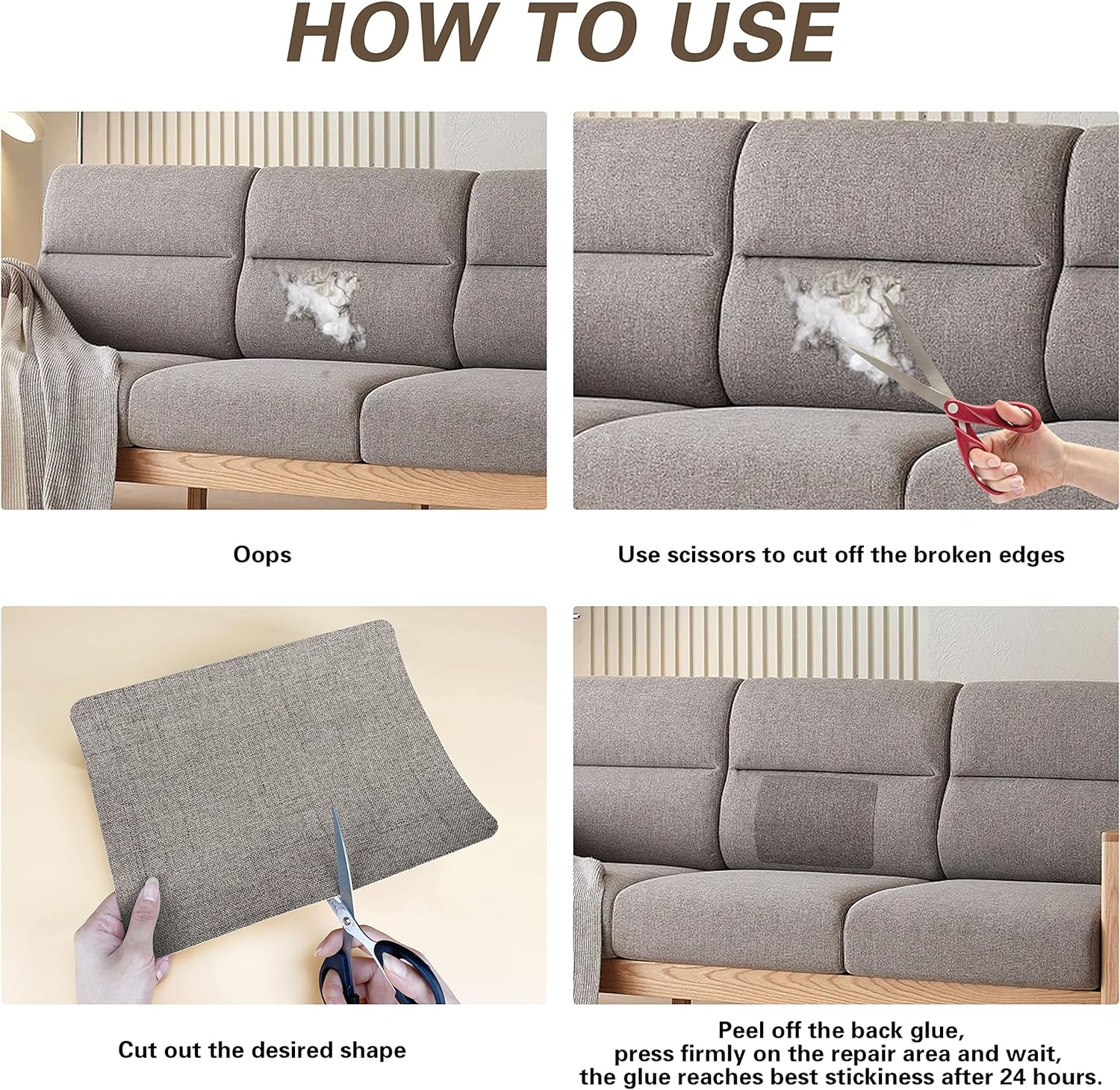 - Product quality: Coarse linen patch with strong adhesive. No glue residue, adheres perfectly in seconds. Enhanced version with increased glue, press firmly onto broken parts. Linen is durable, non-pilling, non-fading, non-shrinking, and suitable for all seasons.