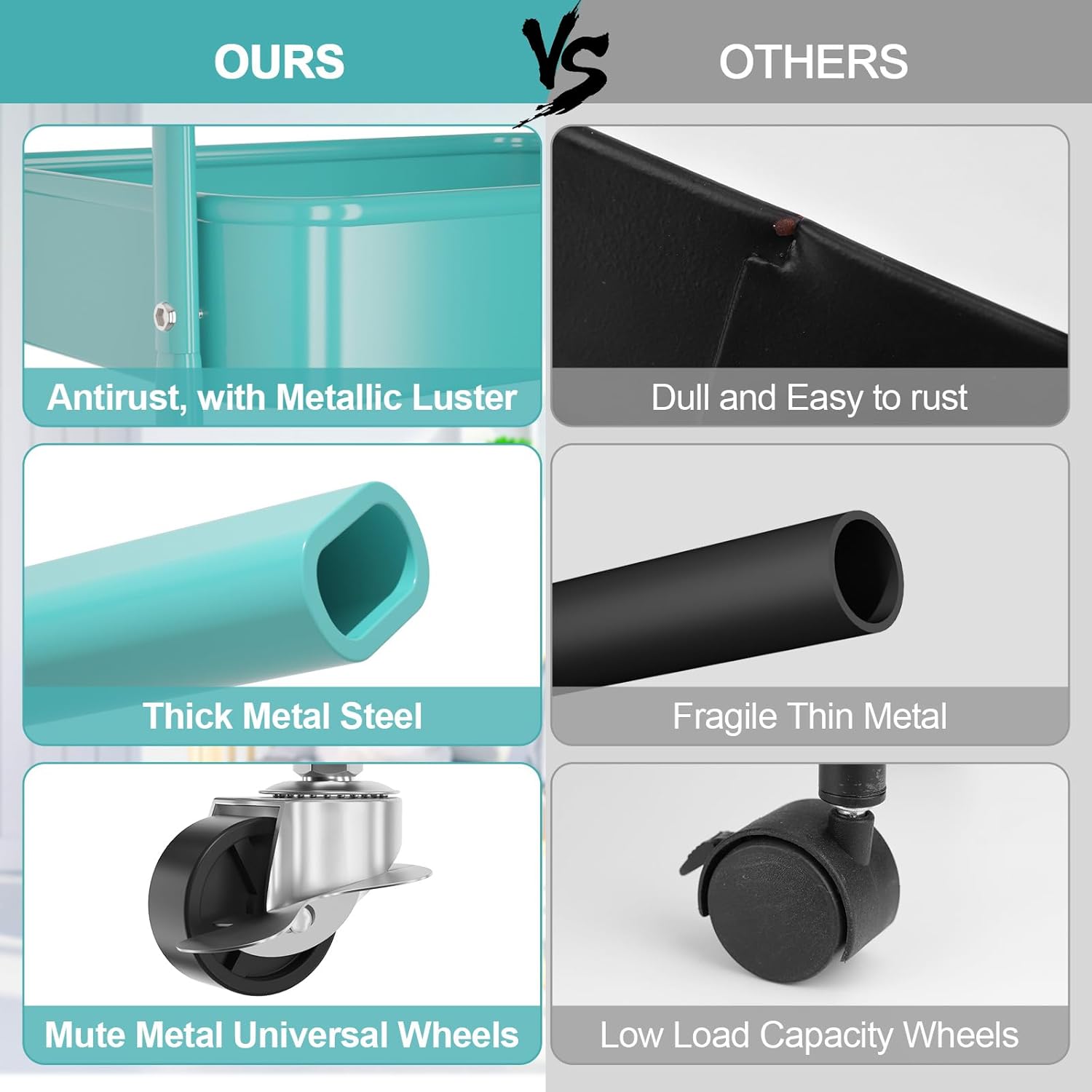 - Multifunctional Rolling Cart: Our utility cart serves multi purposes, suitable for virtually any application and any room. It can be snack cart, tool cart, service cart, book cart, or organization rack in your kitchen, bedroom, laundry room, bathroom, living room, office, garage, and workshop, etc.