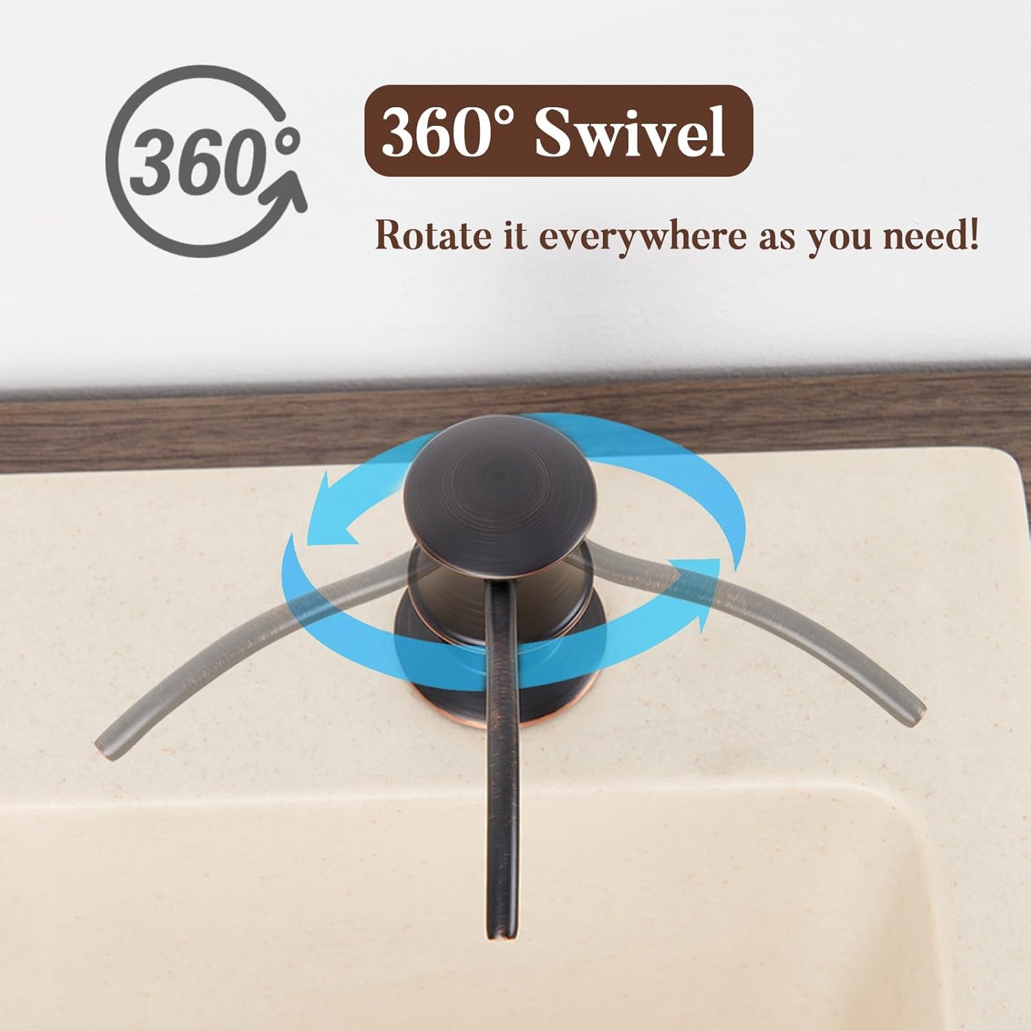 - 【EASY & HANDS ON DESIGN】 1. 360° swivels spout meet your different angles use. 2. Refill the bottle with liquid directly from countertop, more easy and hands-on. 3. Long Spout with arch line, promise a accurate use and no more spill to everywhere