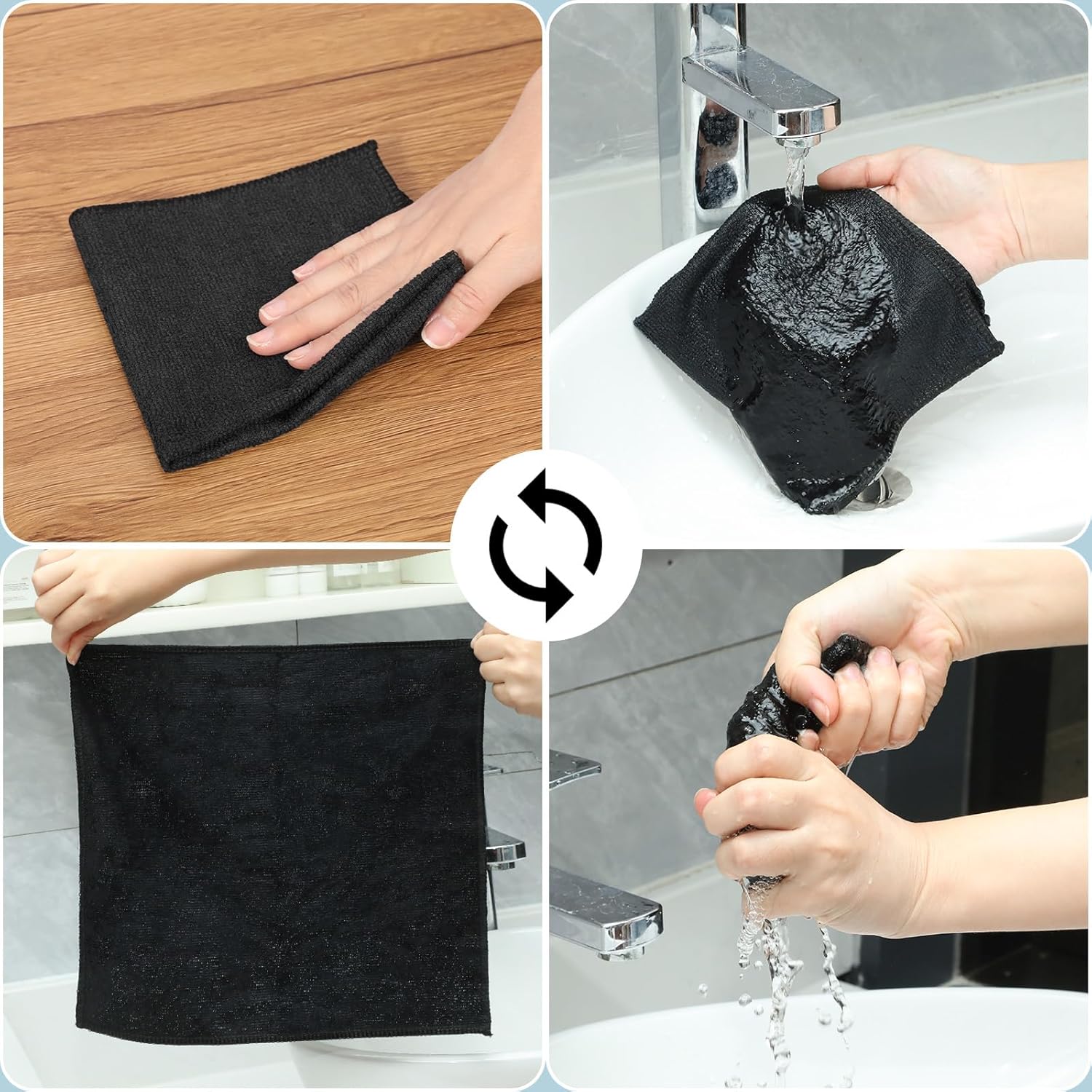 - Large Quantity: you will receive 200 pieces black microfiber cleaning cloth, which come in a vacuum sealed package; Each measures about 12 x 12 inches, ideal for dusting, scrubbing, wiping and drying and works, great for home, offices, kitchen, restaurants, hotels, cars, shop, commercial or other cleaning jobs