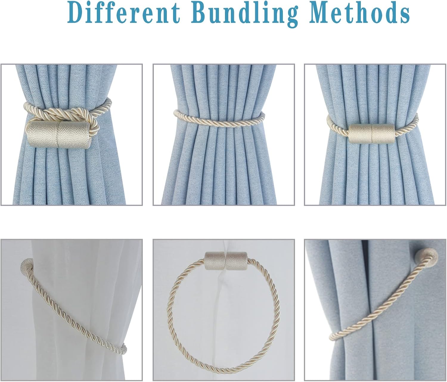 - High-Quality Materials- Magnetic curtain tie backs use an upgraded version of nickel-plated magnets, which are strong and smooth. The brightly colored twisted woven texture rope is hand-woven with premium polyester materials. very soft and good feeling. Beige/Gold/Black/White/Grey/Khaki/Coffee/Blue -Eight colors to choose from