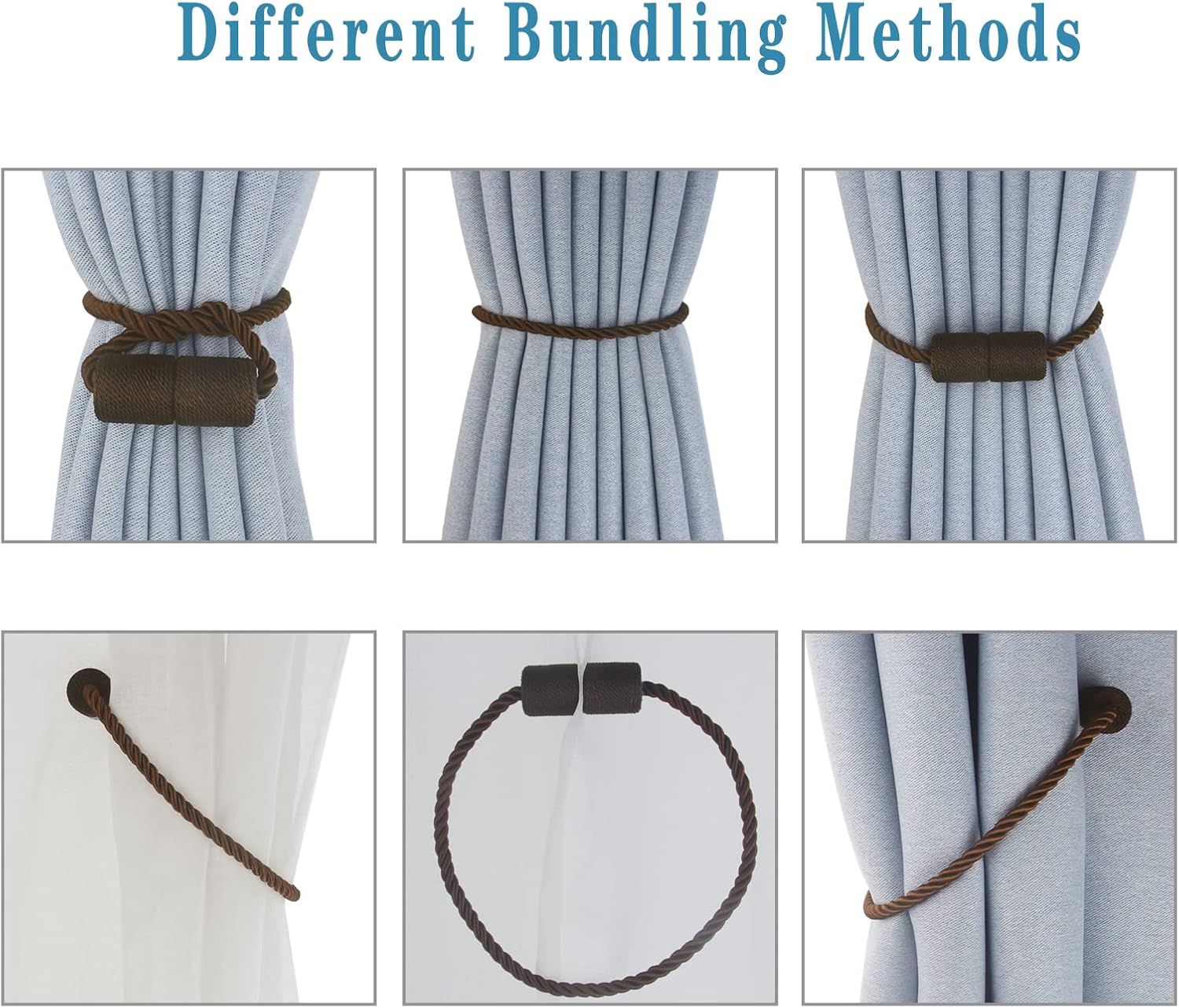 Magnetic Curtain Tiebacks 6 Pack Coffee Curtain Rope Tieback Curtain Holders for Drapes Modern Tie Backs Decorative Curtain Holdbacks