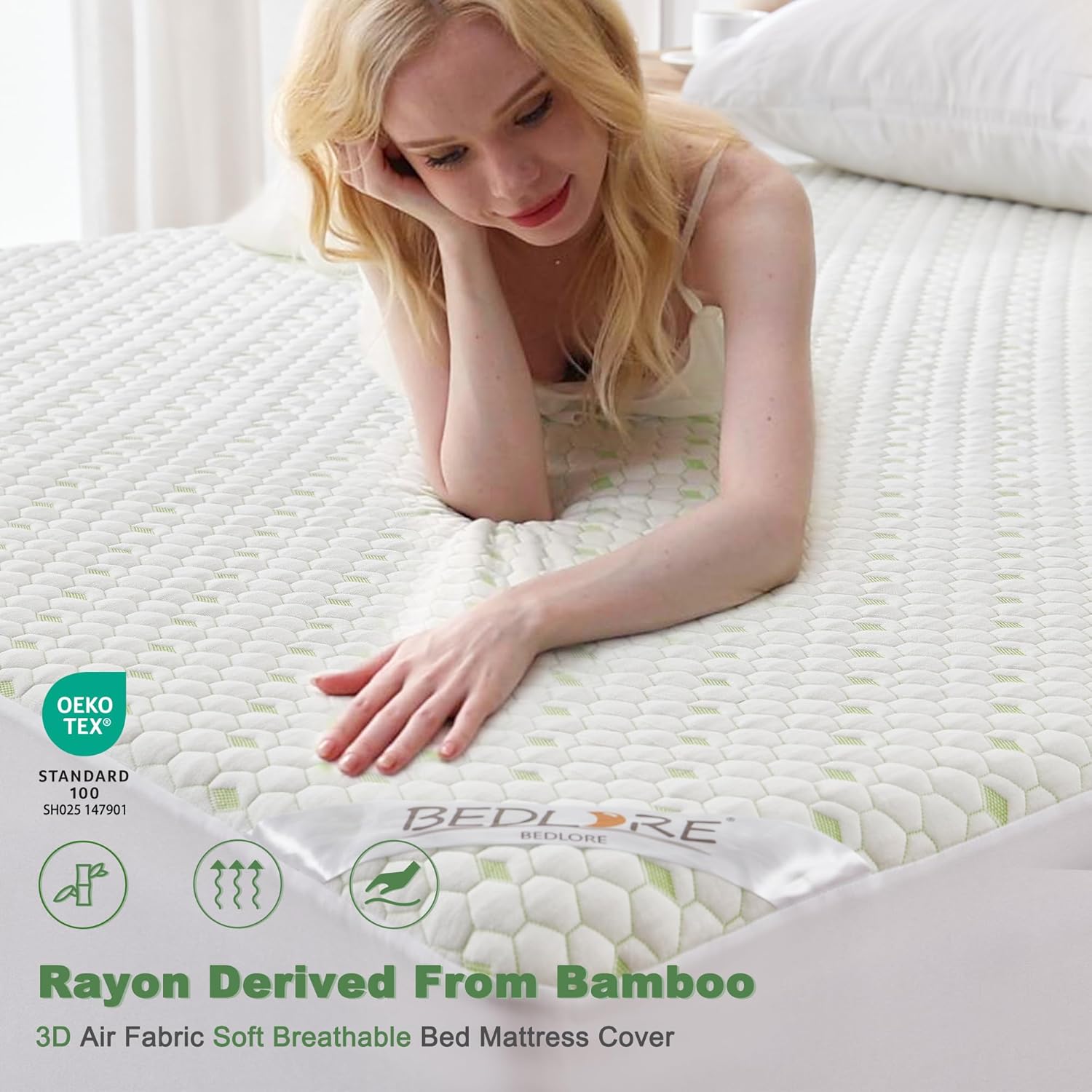 - Waterproof and Breathable: BEDLORE king size mattress protector features impermeable TPU backing, shielding your mattress from fluids, perspiration, urine, and stains so that your mattress is always dry and stain free, further enhances the overall lifespan of your mattress. Our white king mattress protector deep pocket ideal for households with pets or seniors