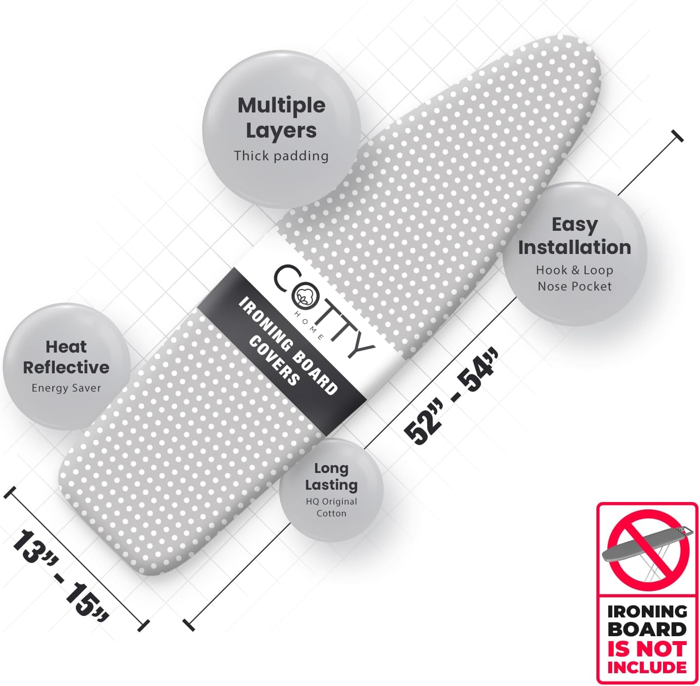 - TIME & ENERGY SAVER : The heat reflective coating of the ironing board cover allows you to iron faster and easier. Thus, you can easily do your ironing work by spending less energy and time. Also this heat-reflective coating technology durable against frequent use.