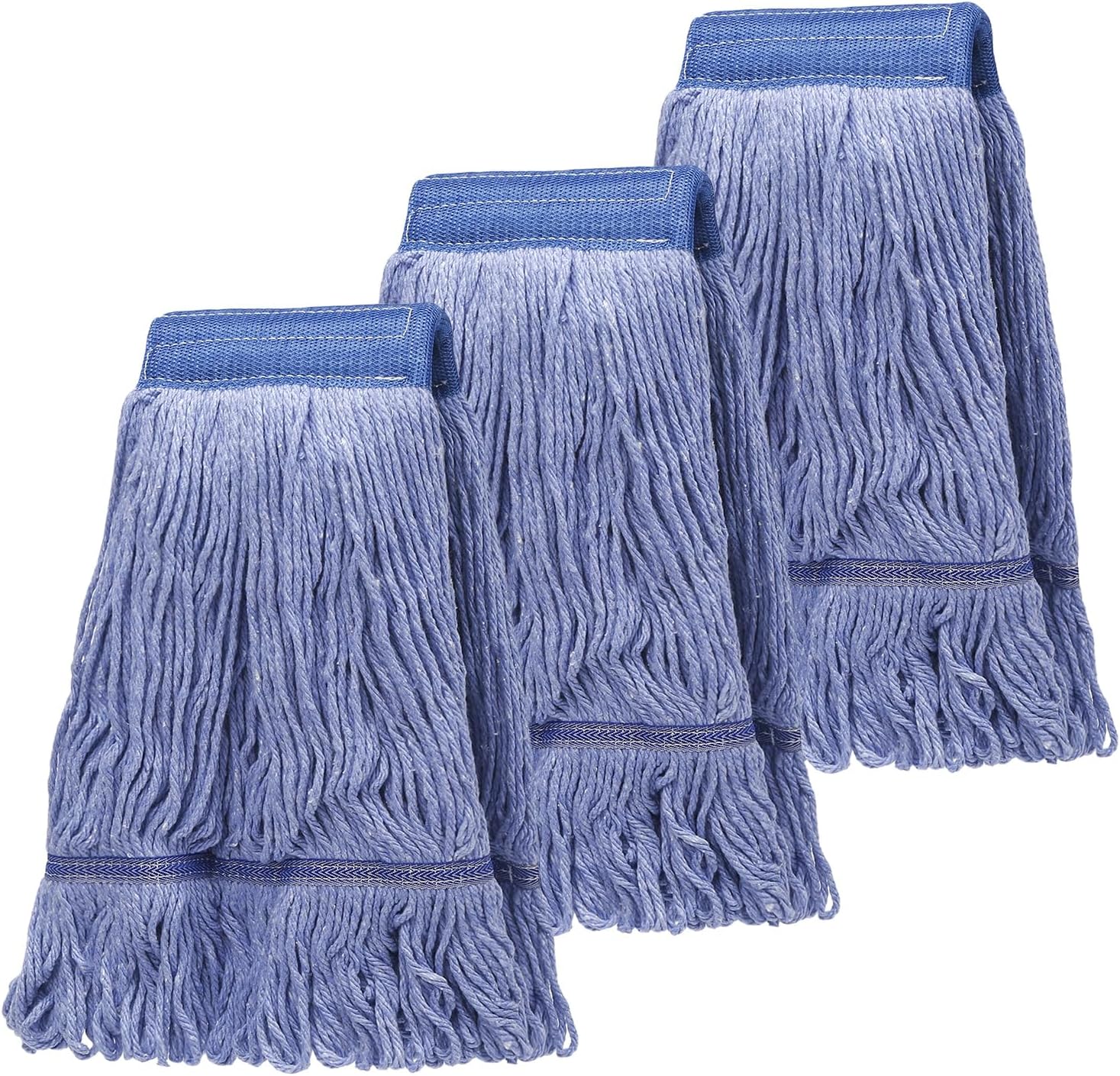 3 Pack Commercial Replace Mop Head, Reusable Mop Head Refills-Replacement Mop Heads Suitable for Heavy Commercial Industrial Residential Areas,Wet Industrial Cotton Looped End String Mop Head (Blue)