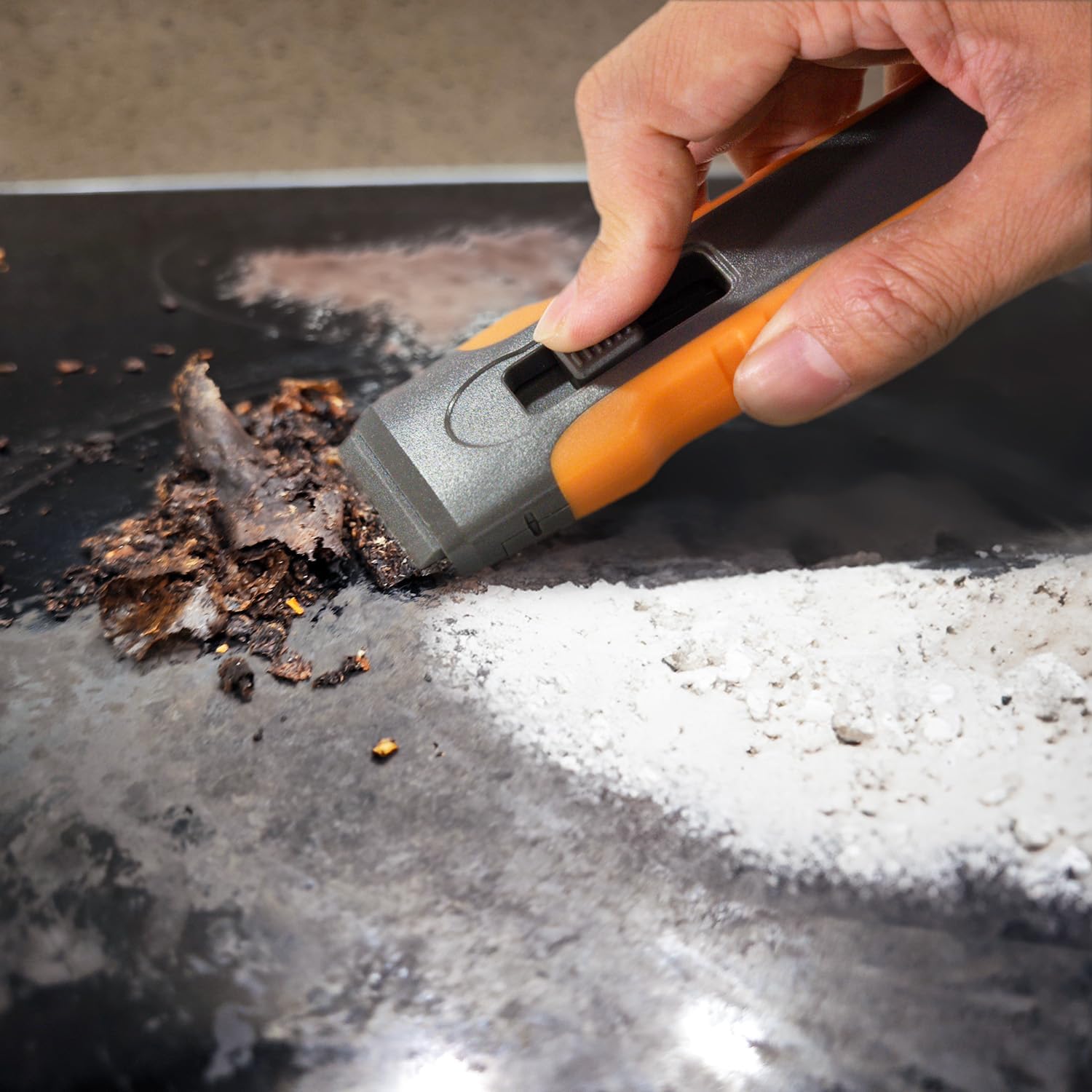 - Perfect for use on glass, ceramic, and induction stovetops and cooktops, and is great for removing burnt food and gunk, as well as scraping off caulk and sealant in the bathroom. It is also effective for removing a variety of other materials, including window paint, shims, paints, stickers, decals, coloring film residues, wallpaper, and borders around the house