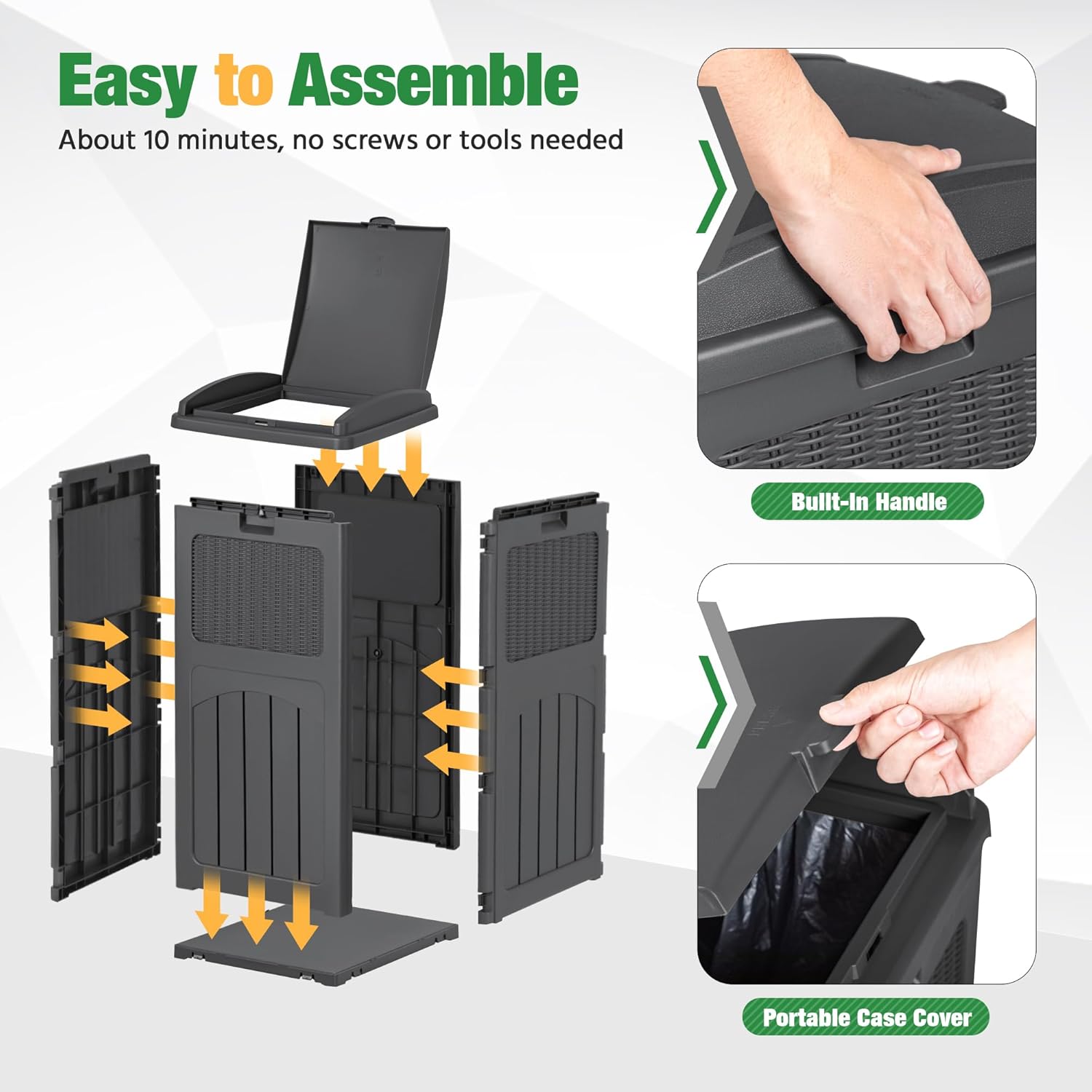 - 30 Gallon Capacity: It is enough to withstand outdoor weather conditions. It is ideal for a patio, garden, porch, backyard, pool or deck to keep your space clean.