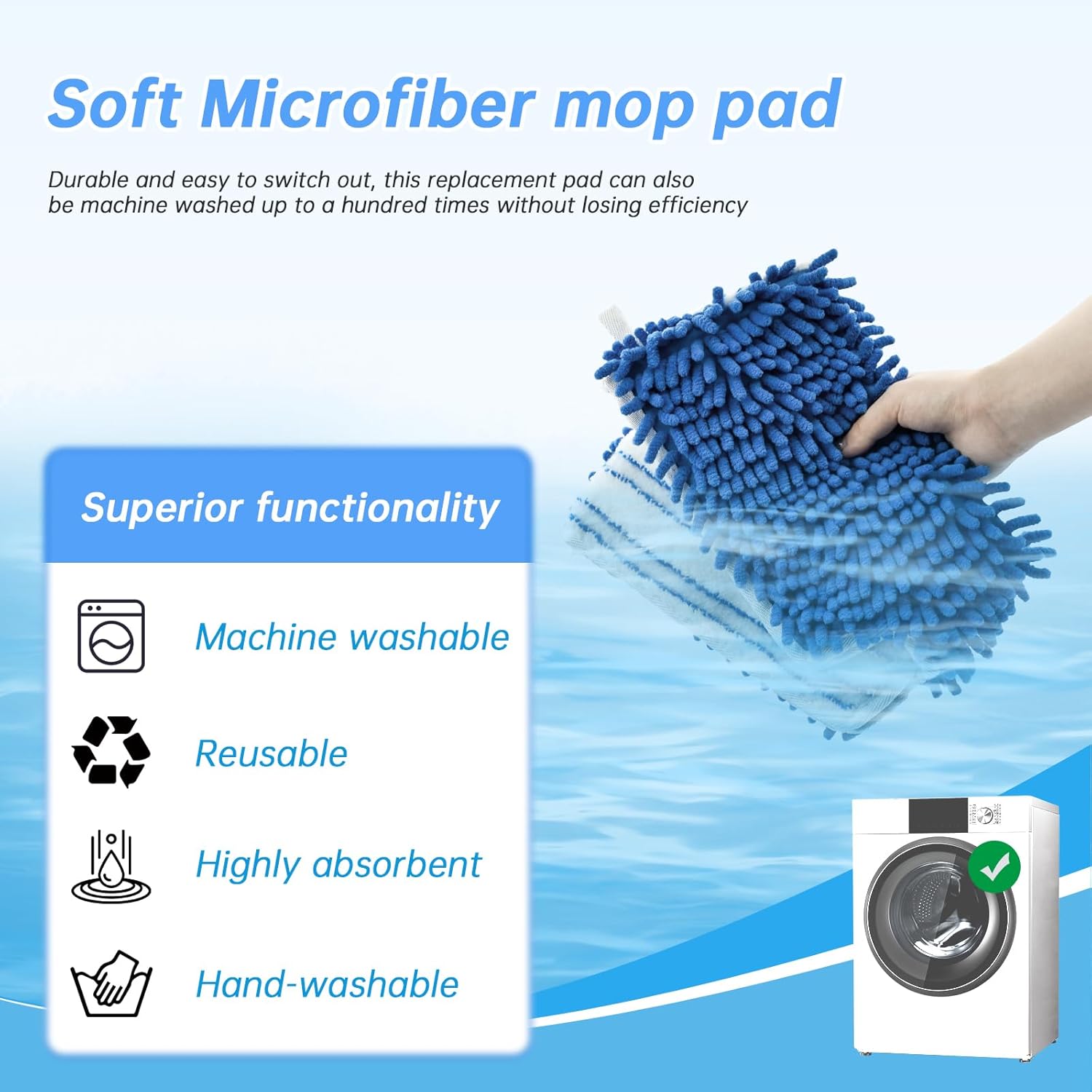 - 【Wet & Dry Use Mop Replace Heads】:Microfiber mop replace heads are double-sided,come with chenille and microfiber sides,the chenille fabric side had strong cleaning ability for dry dusting, can easily absorb dust, hair ,pet fur without scratches from floors.the other side microfiber with scrub strips for absorbing water,deep cleaning tough dirts and stains.