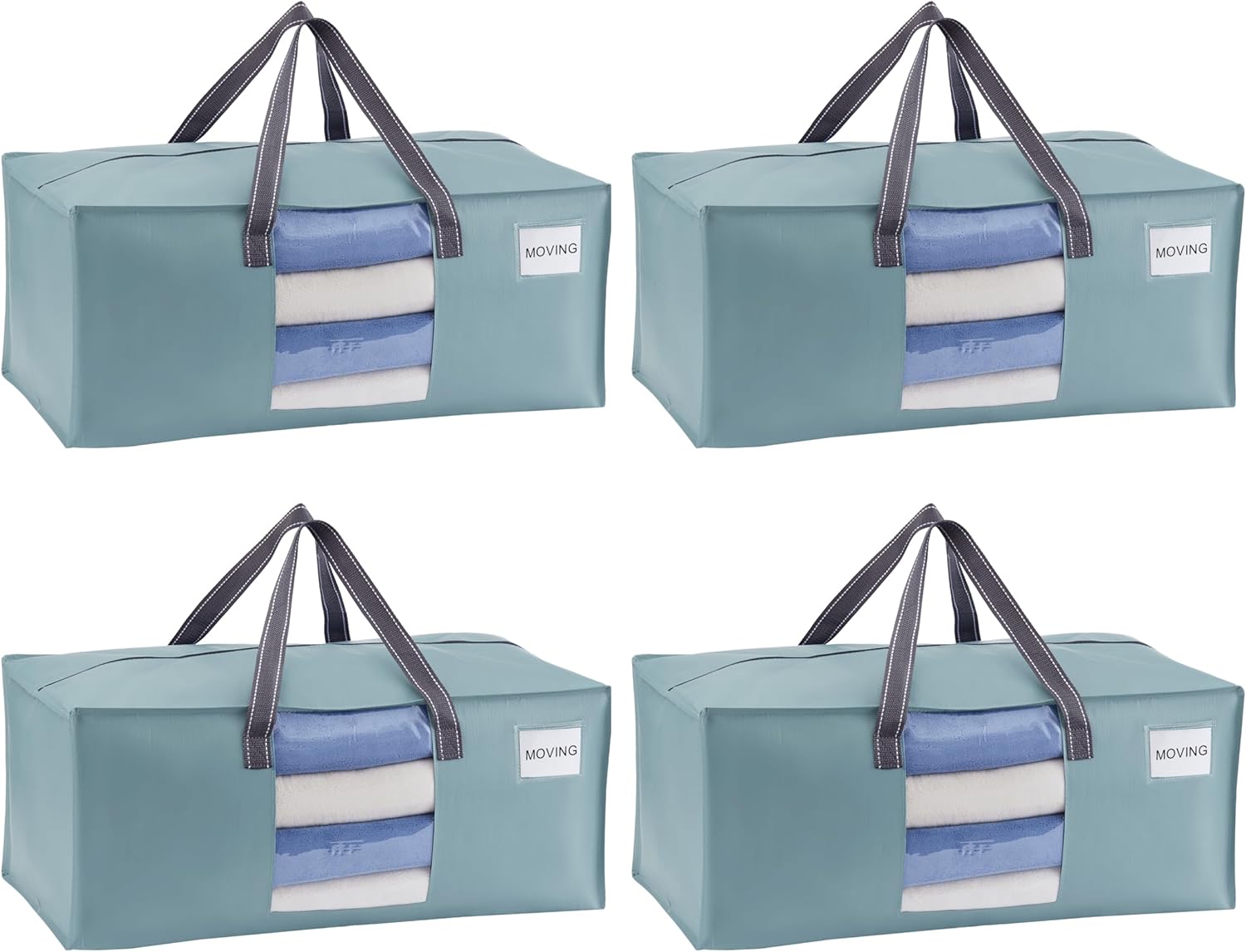 VENO 4 Pack Moving Bags for College, Heavy-Duty Storage Totes, Moving Boxes and Wardrobe Packing Supplies Alternative - Extra Large Durable Laundry Bags for Clothes (Light Blue Matte, 4 Pack)