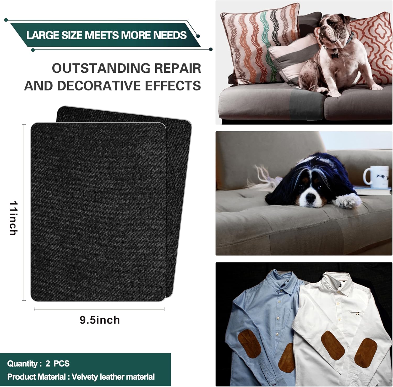 - WIDELY USED: Velvet repair patches are suitable for repairing all kinds of sofa tears, abrasions, pet bite wounds and covering sofa stains and other damages. Repair damaged sofa surfaces for less money and make it new again.