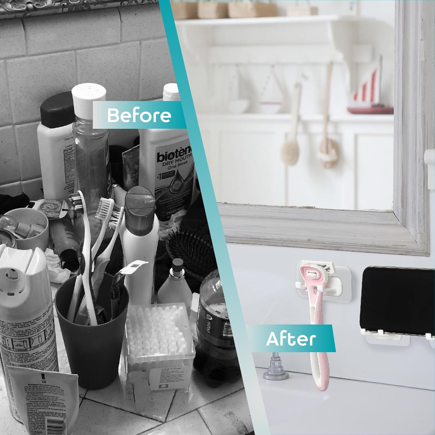 Hook LAB Self-Adhesive Shower Razor Holder, 2-Pack, Removable & Reusable Waterproof Hooks, for Towels, Bath Accessories, Kitchen & Bathroom Use - White