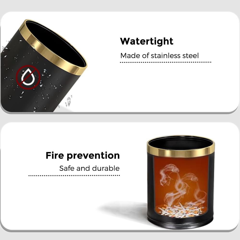14L/3.7GAL Black and Gold Open Top Trash Can - Metal Office Wastebasket Without Lid for Office, Hotel, Store, Restaurant