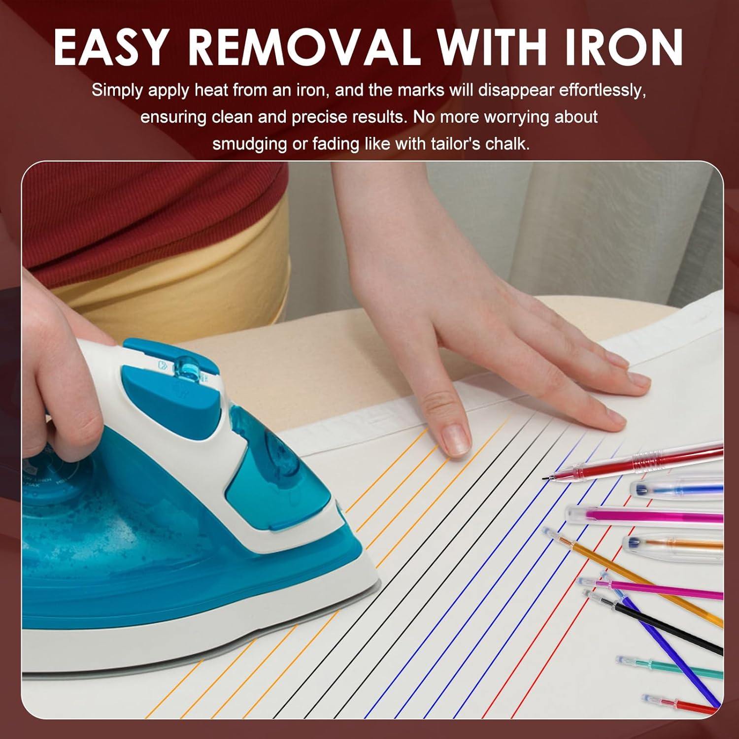 - Heat Erasable Technology: Our fabric pens feature advanced heat erasable ink that disappears with the touch of an iron. No more smudging or dust issues like traditional tailors chalk, ensuring precise and clean markings until you're ready to erase.